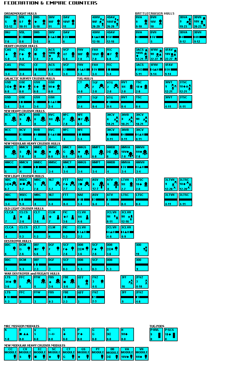 2 EP (for the fighters). Counters for both the single ship and the 3DHV group are provided.