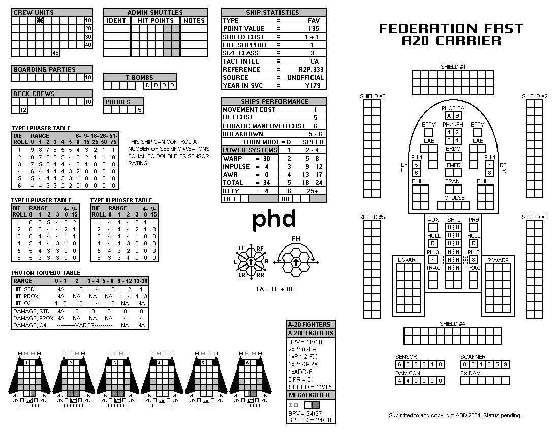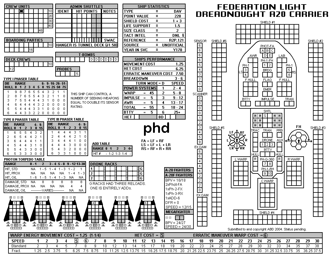 (R2P.121) FEDERATION LIGHT DREADNOUGHT A20 CARRIER (DAV) Proposed at