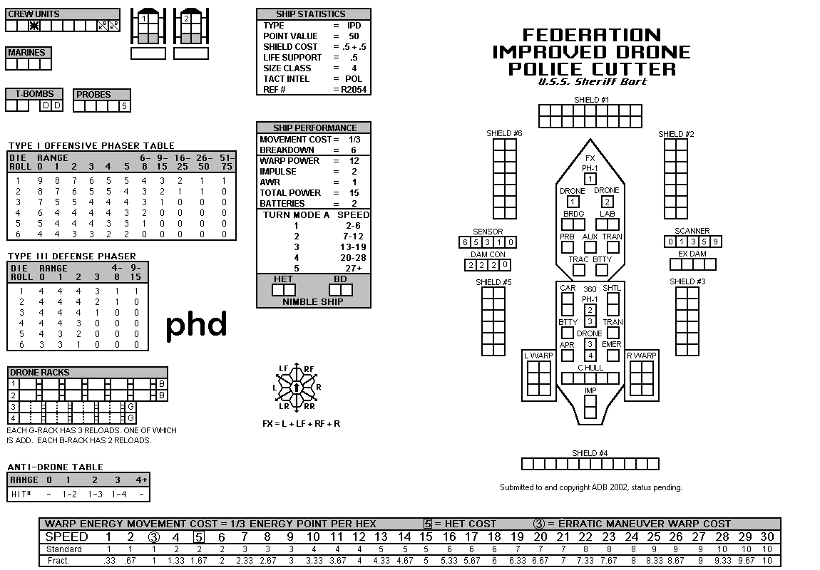 Note: Due to the small size of this ship, a type-VI drone does 4 pts. of damage rather than 2,
