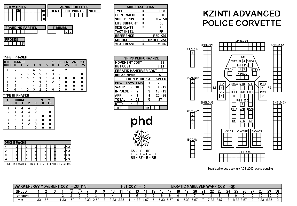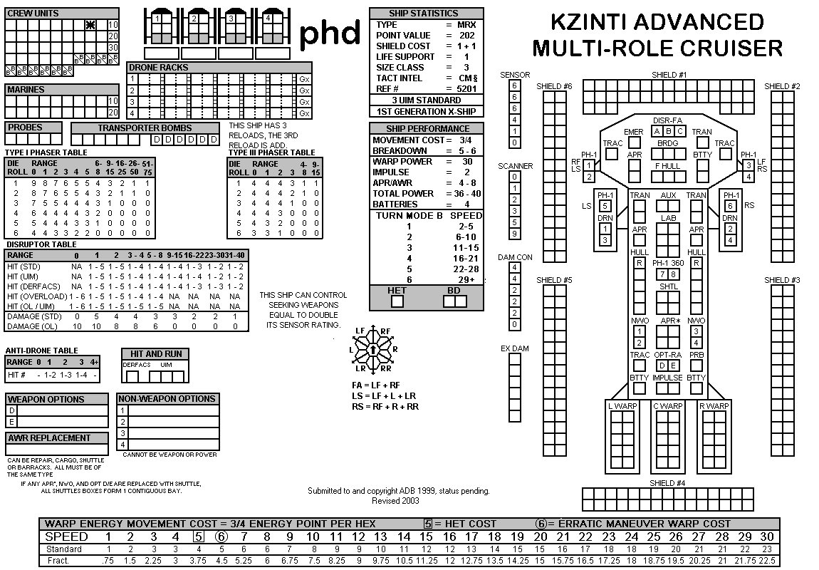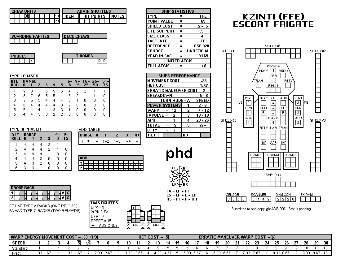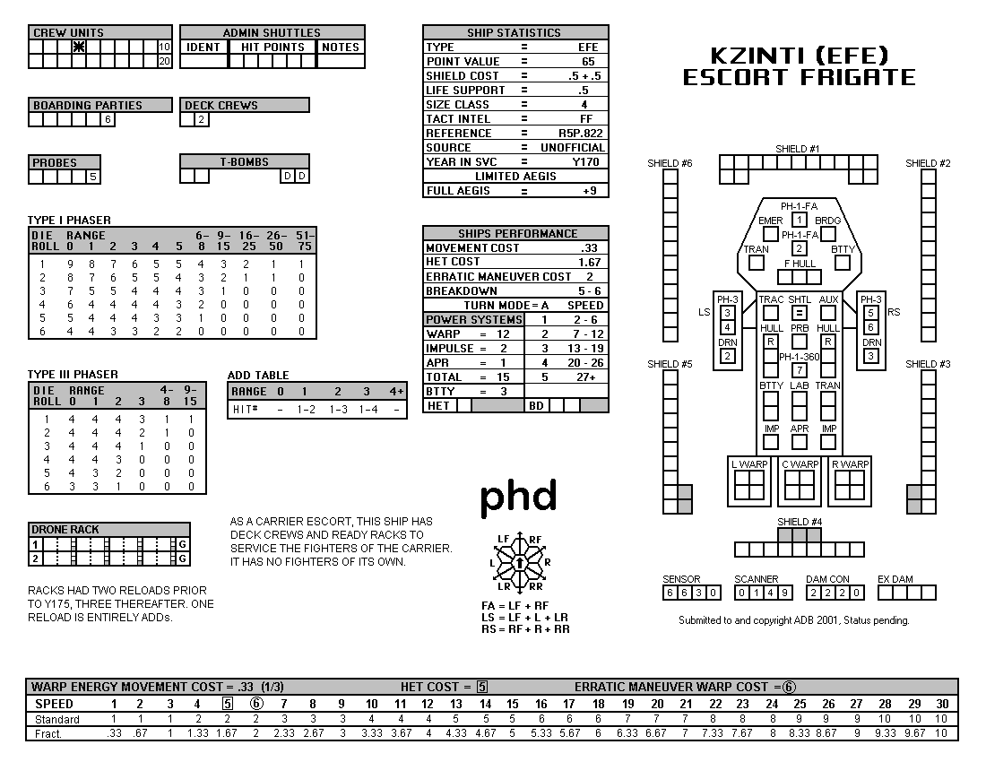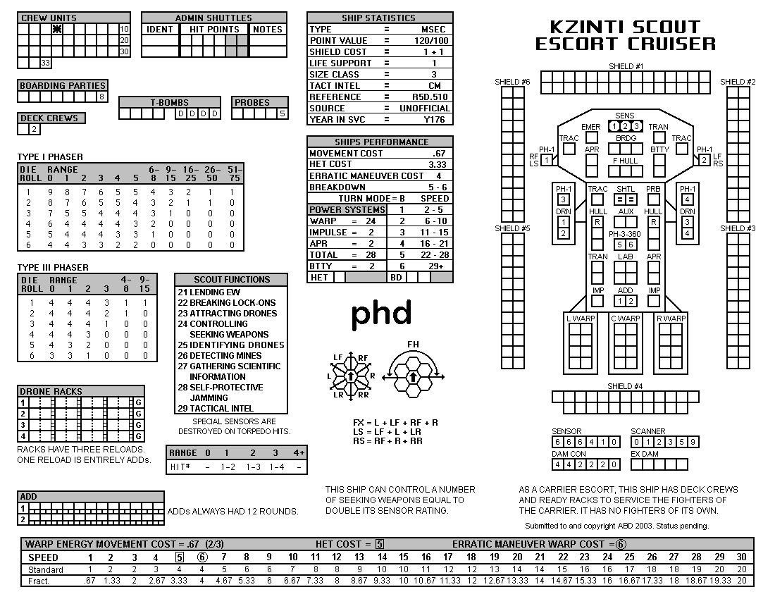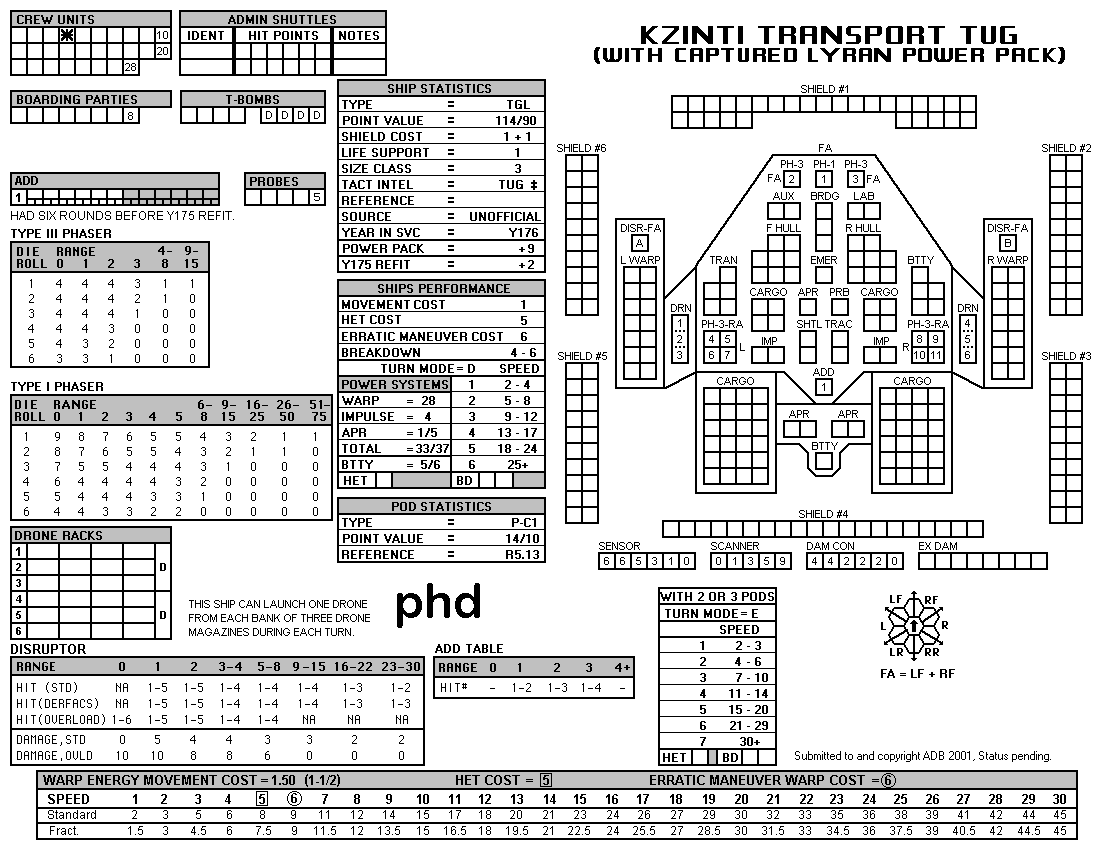 Y175 refit. NOTE: On some SSDs the fighter/shuttles have shaded boxes, these represent the crippled the status of the fighter/shuttle. NOTE: On some SSDs the crew check-off boxes have a 'B' or 'D' in them, these represent the crew units that are Boarding Parties or Deck Crews. |