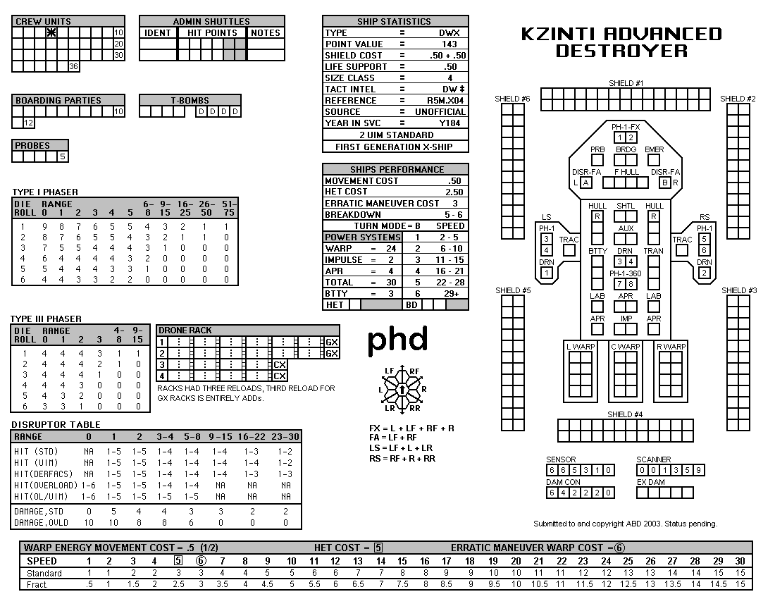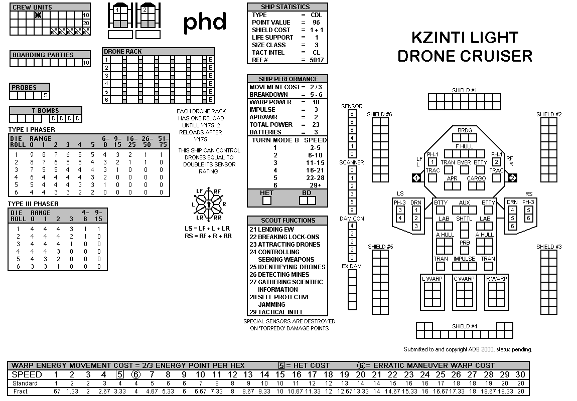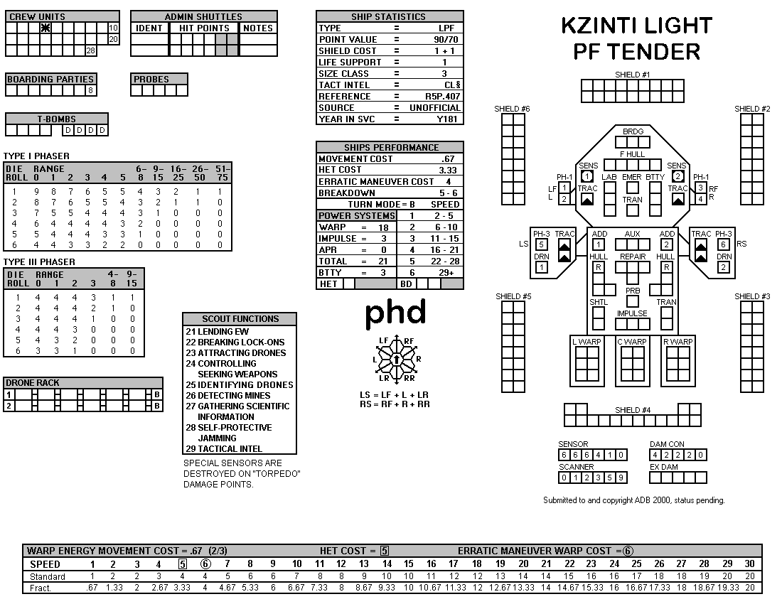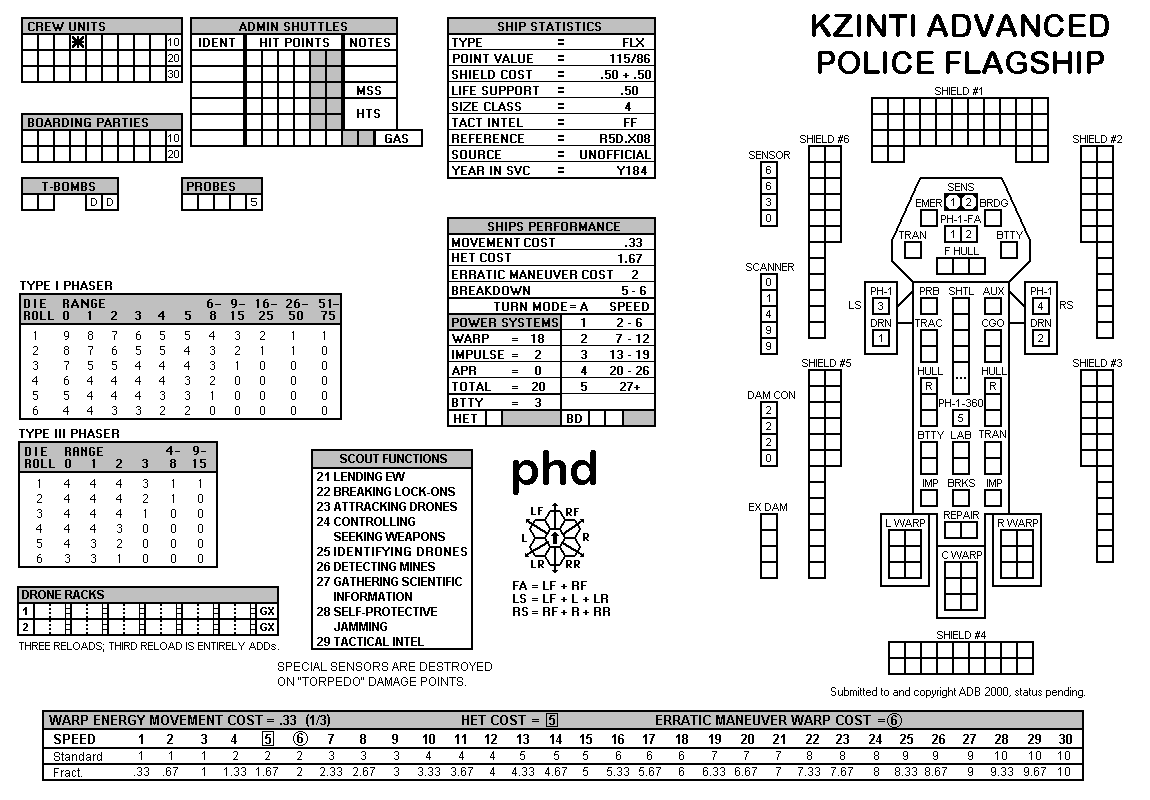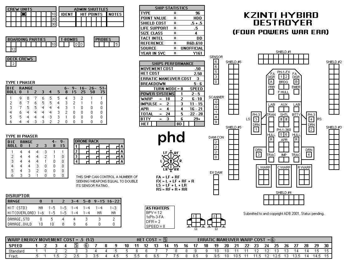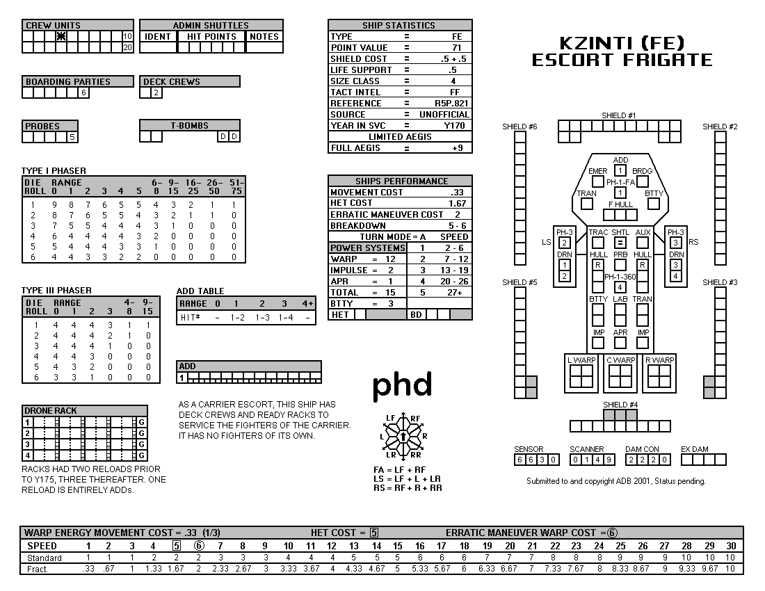 Y175 refit. NOTE: On some SSDs the fighter/shuttles have shaded boxes, these represent the crippled the status of the fighter/shuttle. NOTE: On some SSDs the crew check-off boxes have a 'B' or 'D' in them, these represent the crew units that are Boarding Parties or Deck Crews. |