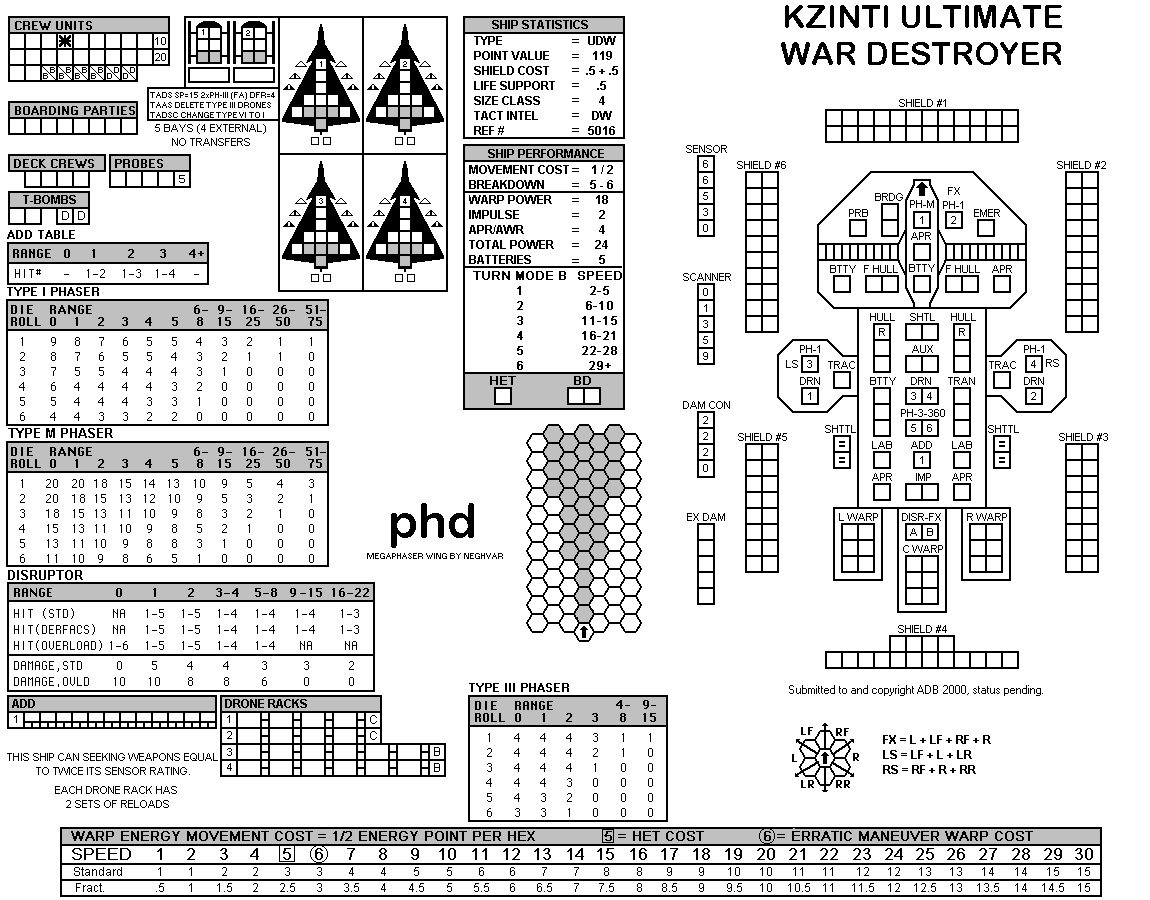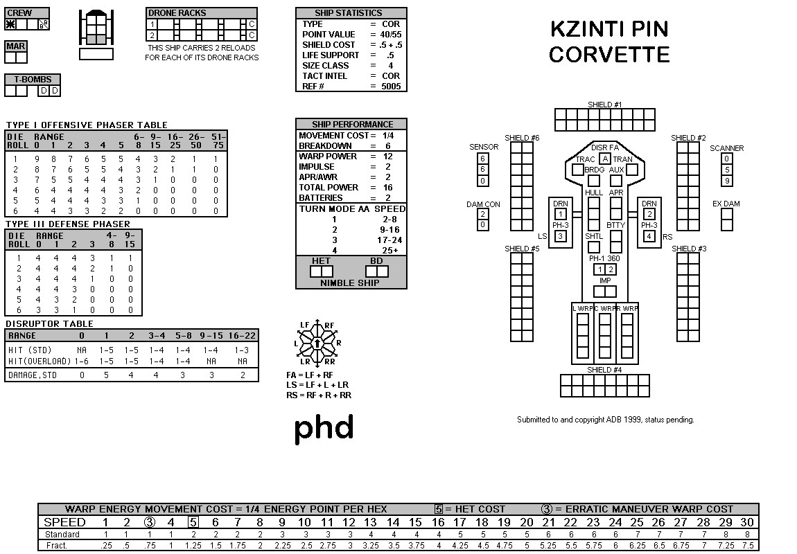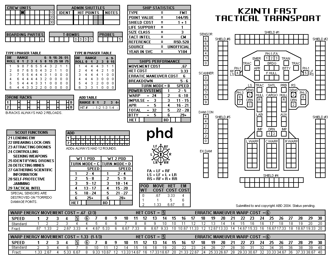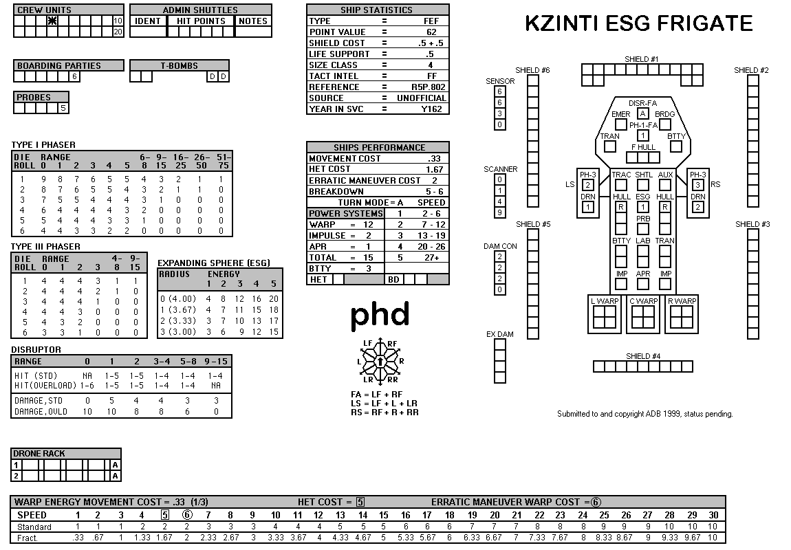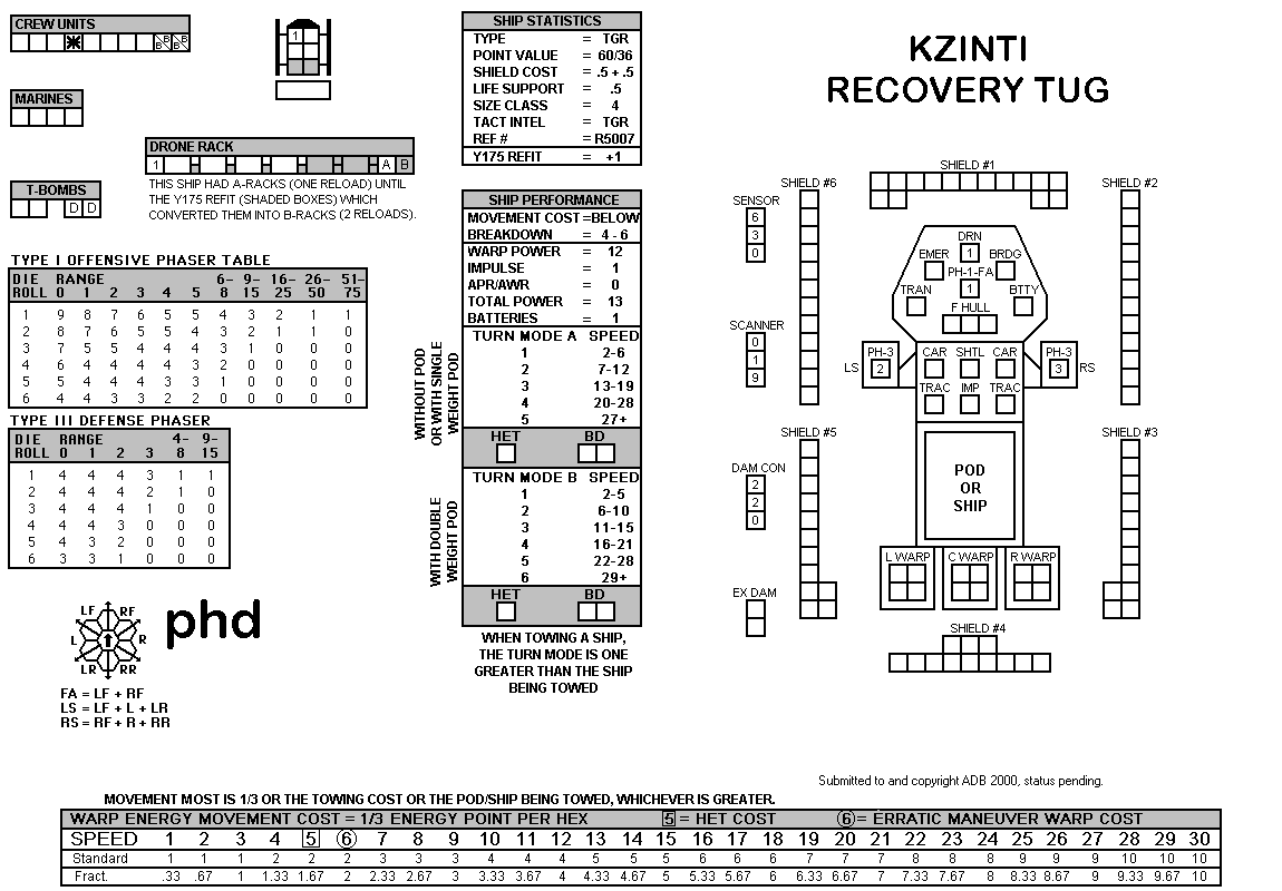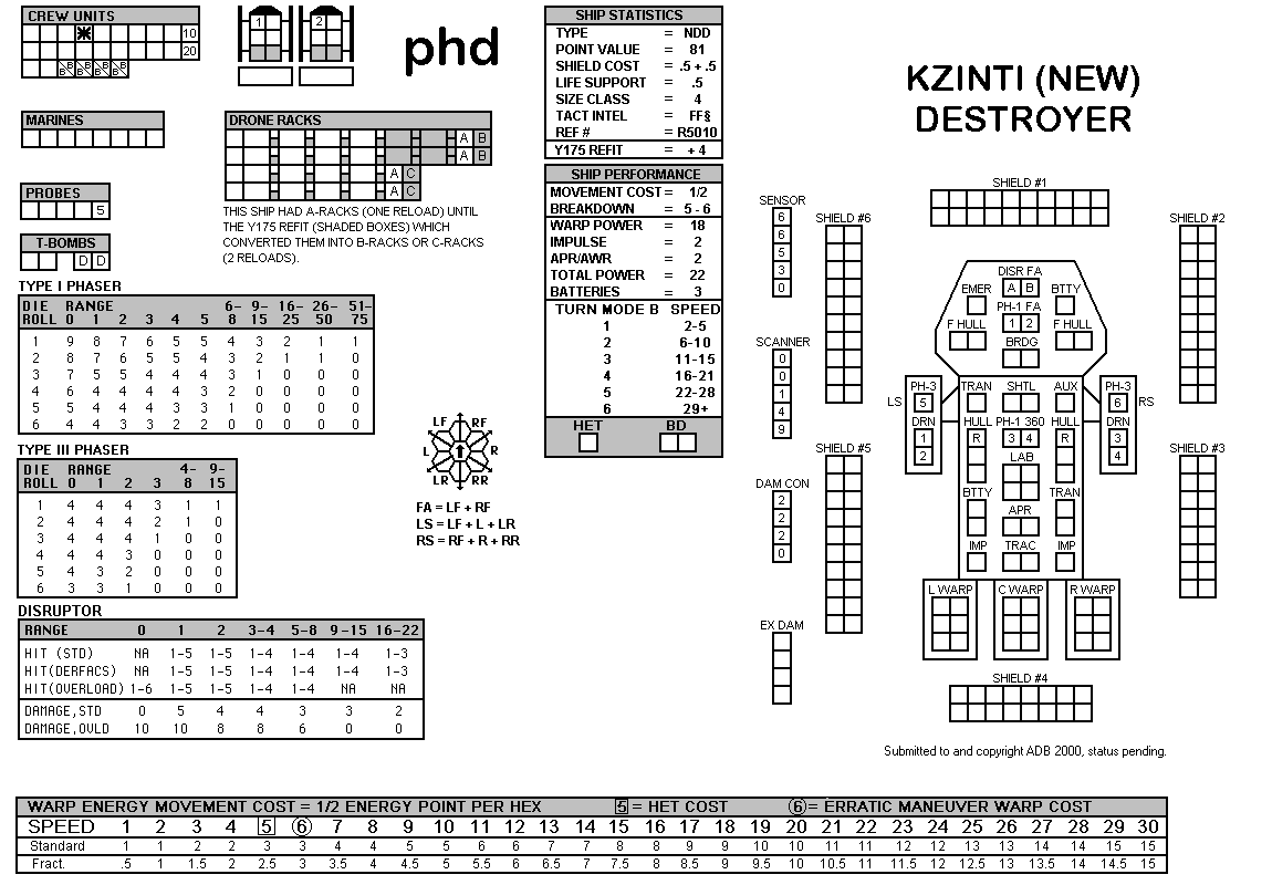 Y175 refit. NOTE: On some SSDs the fighter/shuttles have shaded boxes, these represent the crippled the status of the fighter/shuttle. NOTE: On some SSDs the crew check-off boxes have a 'B' or 'D' in them, these represent the crew units that are Boarding Parties or Deck Crews. |