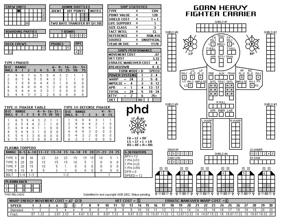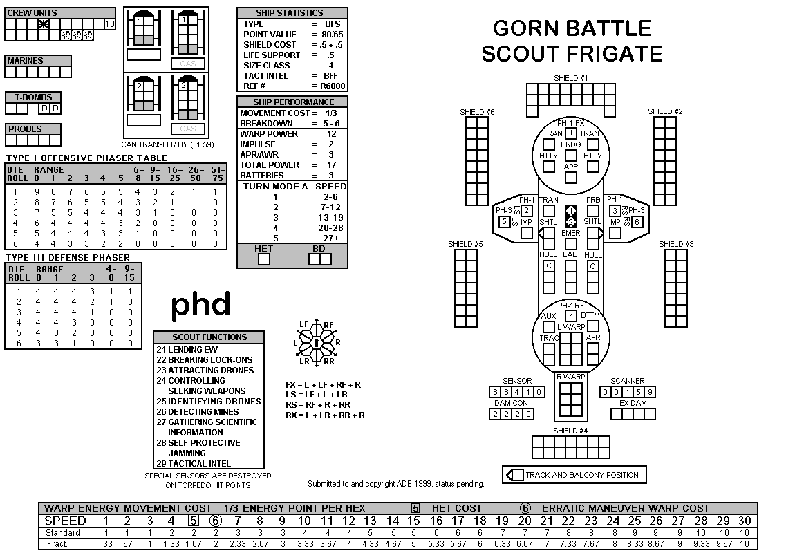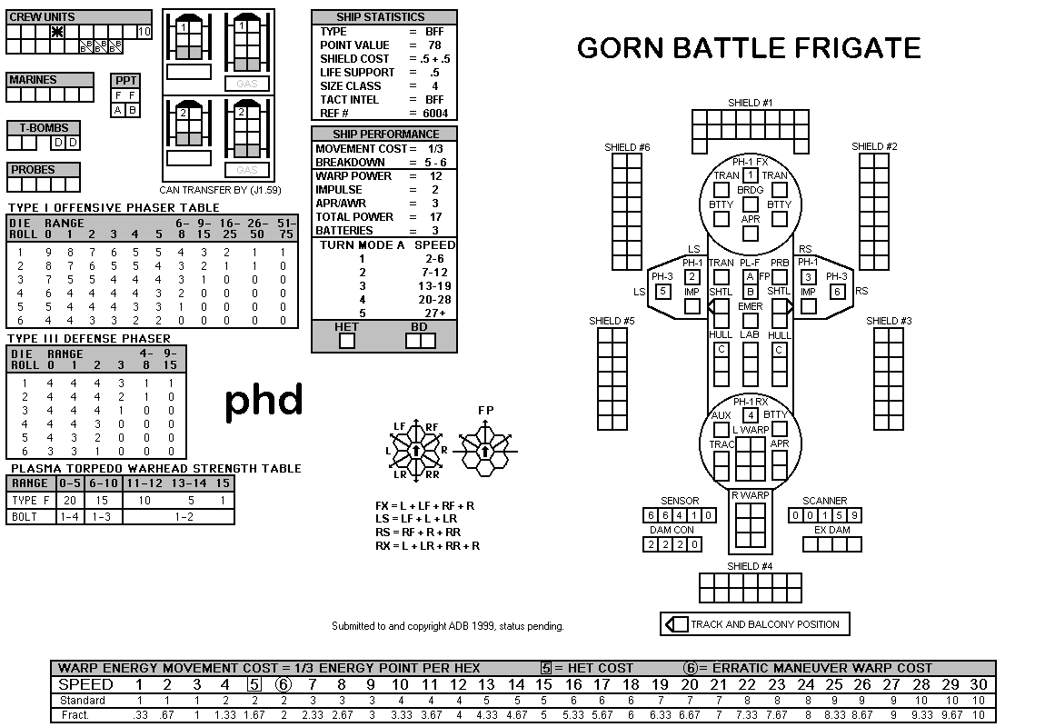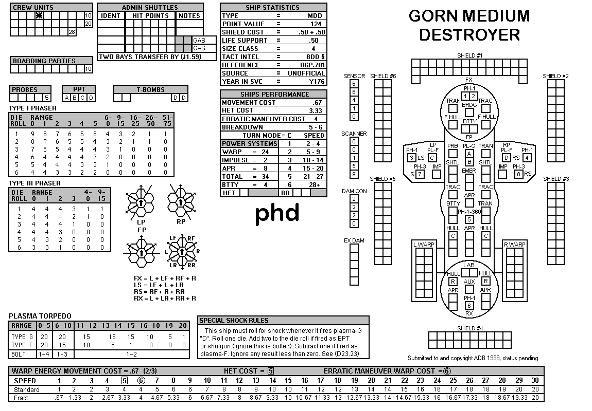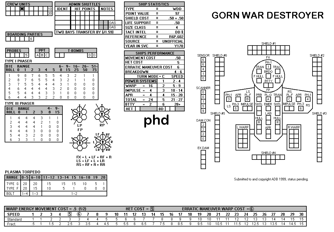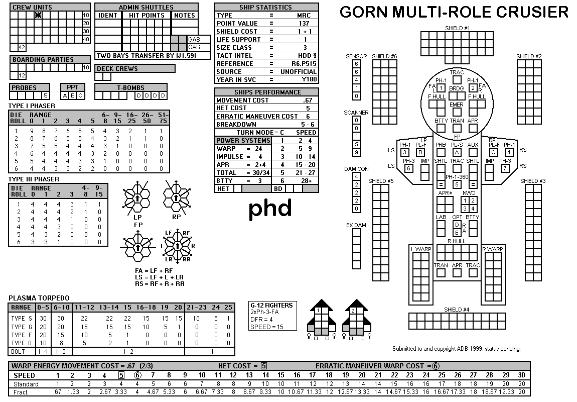 | Note: Due to the small size of this ship, a type-VI drone does 4 pts. of damage rather than 2, and any defensive fire systems treat this ship as if it was a PF. |