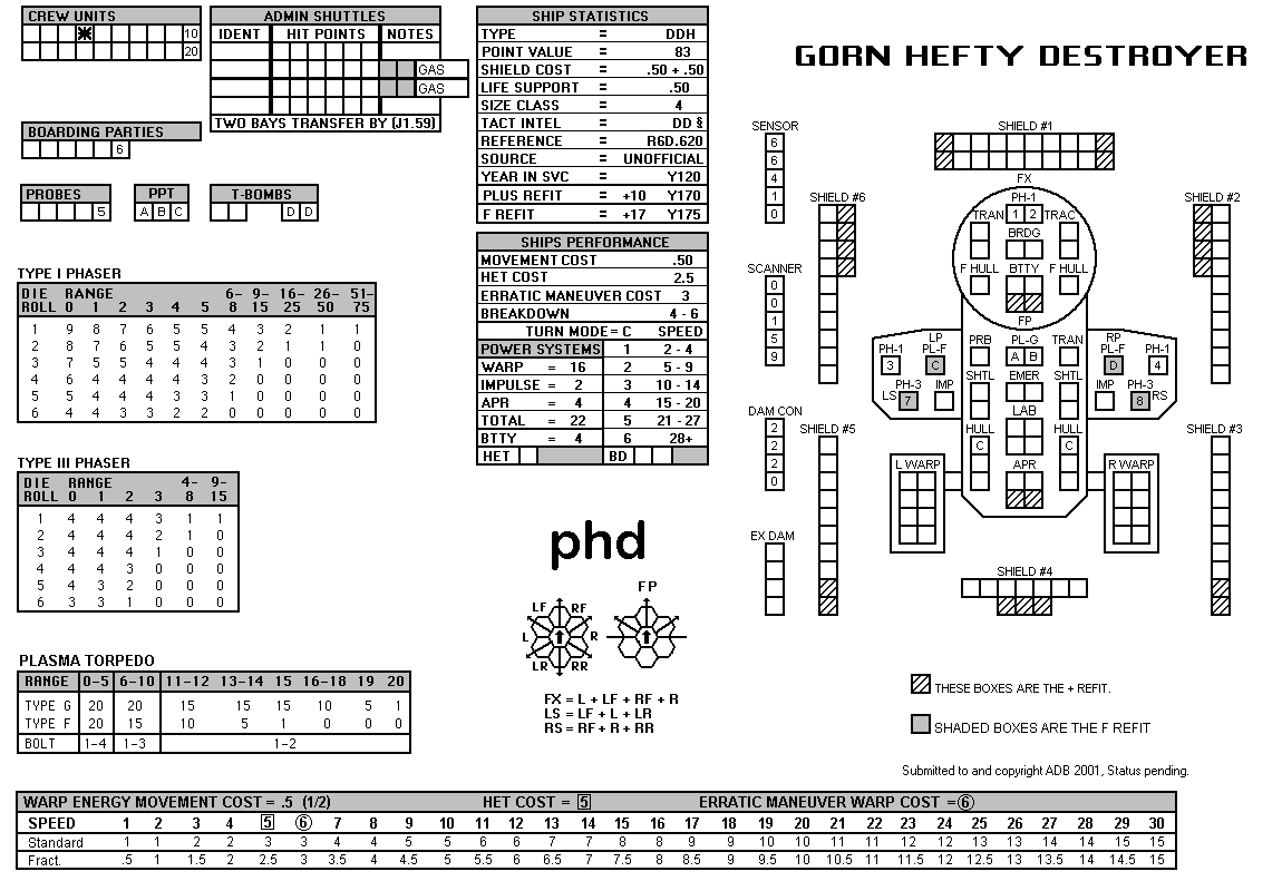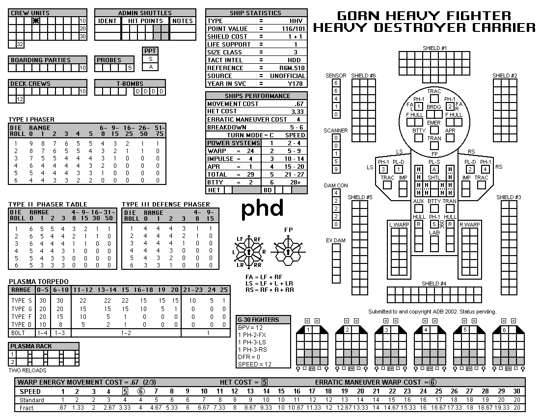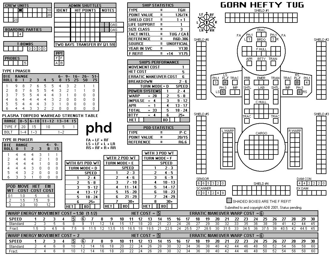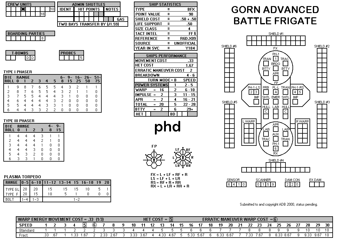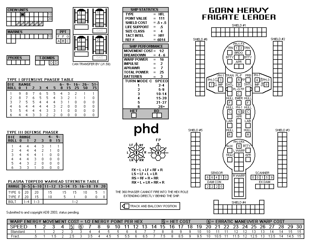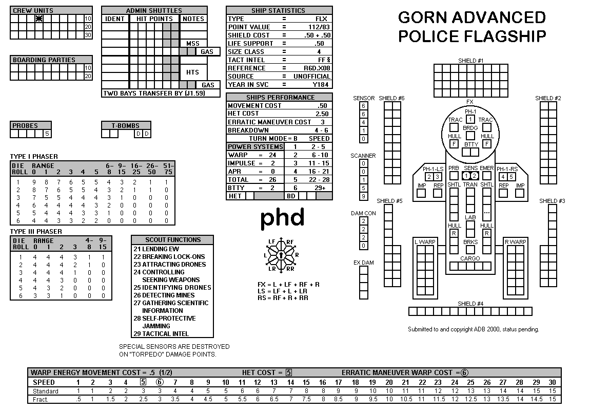 | Note: Due to the small size of this ship, a type-VI drone does 4 pts. of damage rather than 2, and any defensive fire systems treat this ship as if it was a PF. |