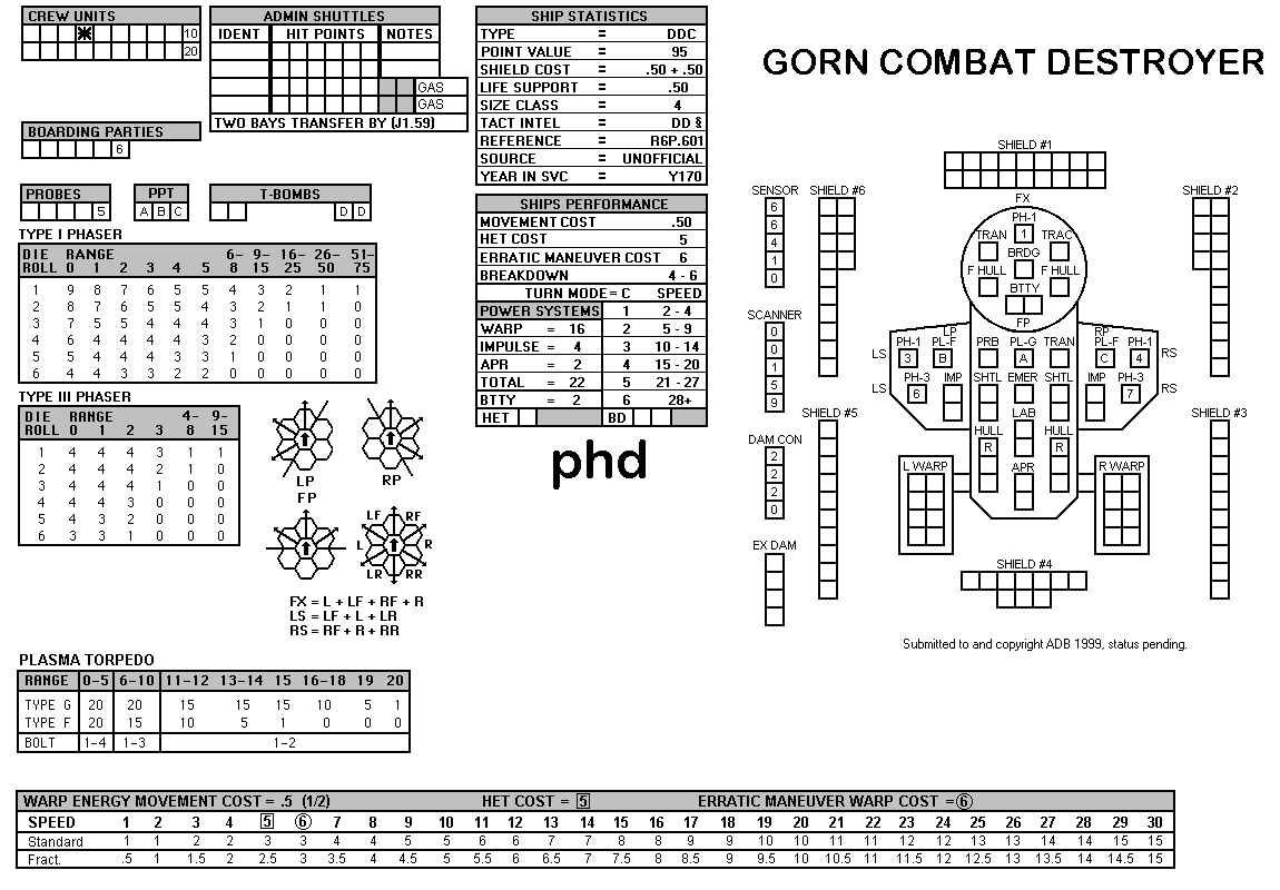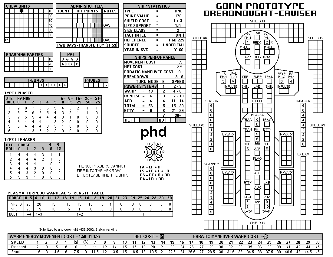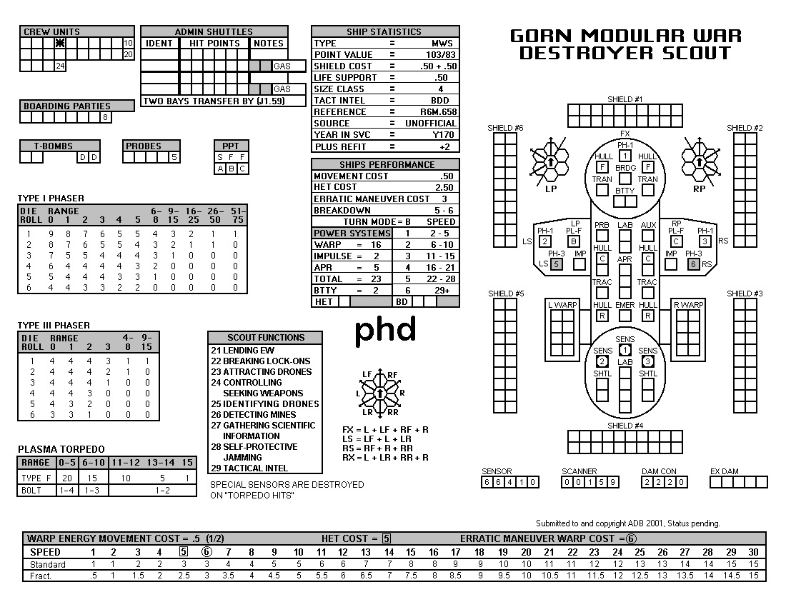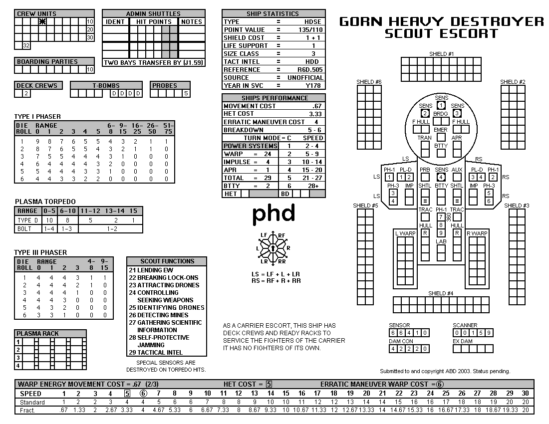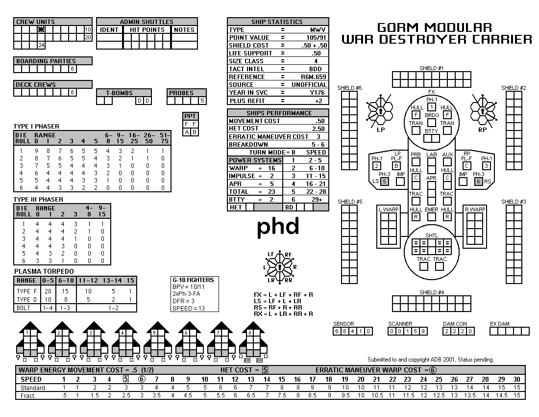 | Note: Due to the small size of this ship, a type-VI drone does 4 pts. of damage rather than 2, and any defensive fire systems treat this ship as if it was a PF. |