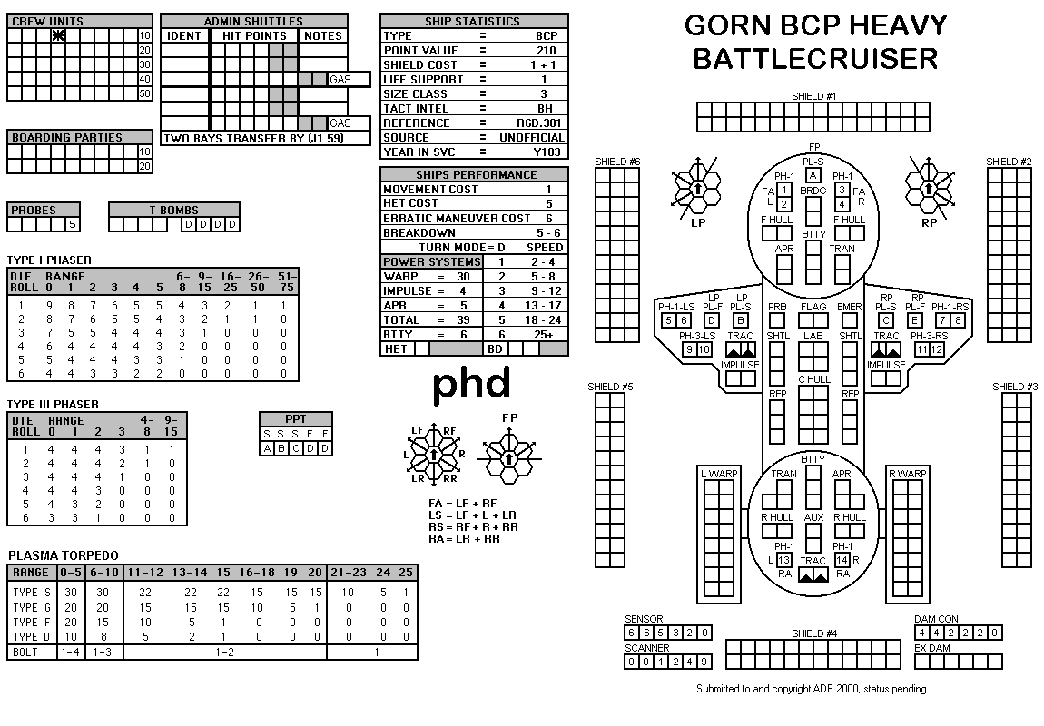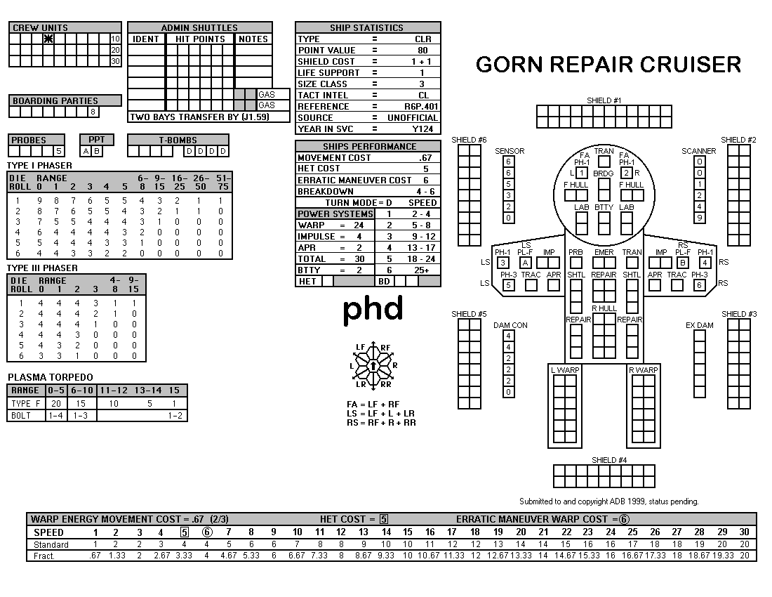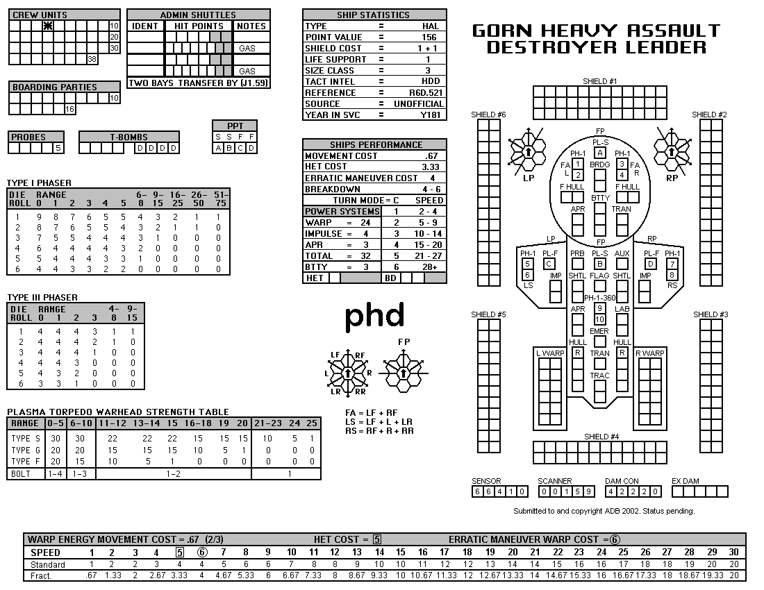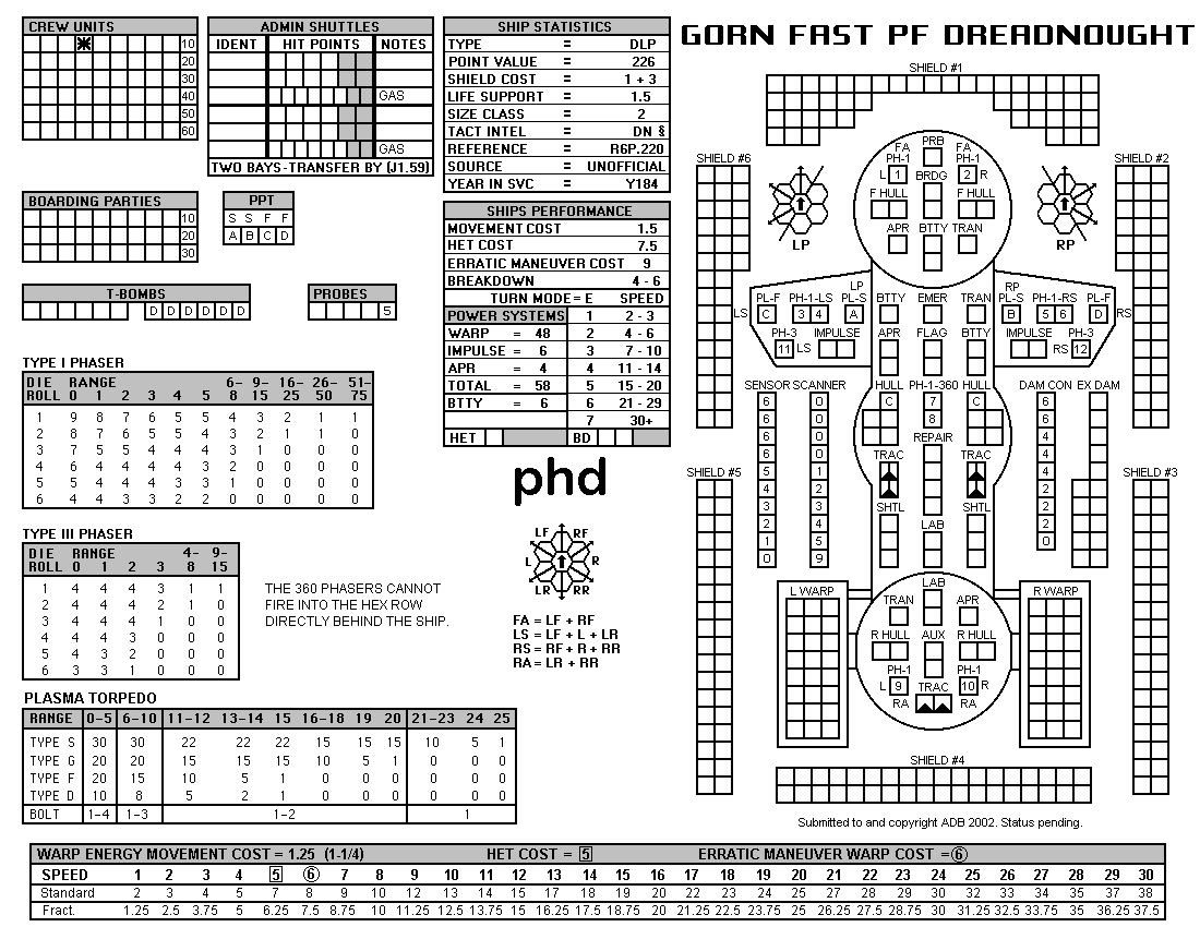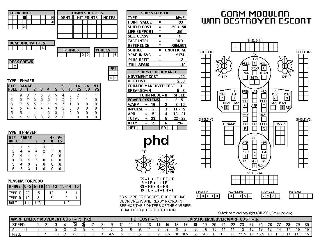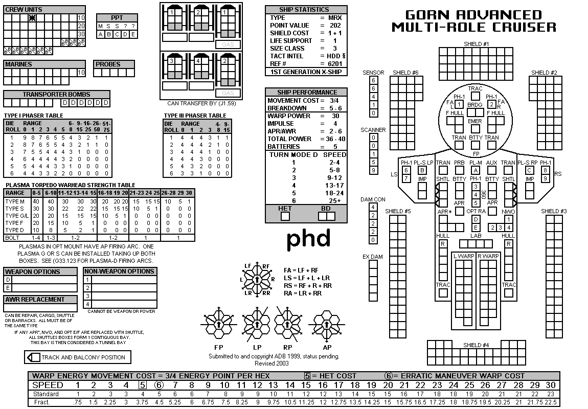 | Note: Due to the small size of this ship, a type-VI drone does 4 pts. of damage rather than 2, and any defensive fire systems treat this ship as if it was a PF. |