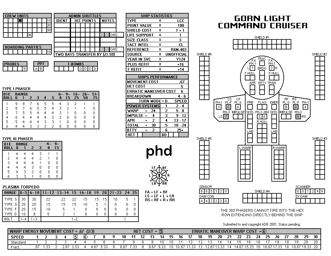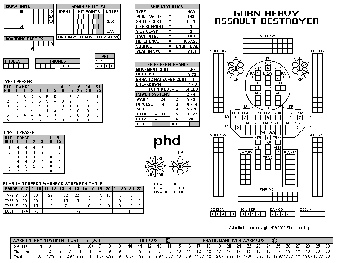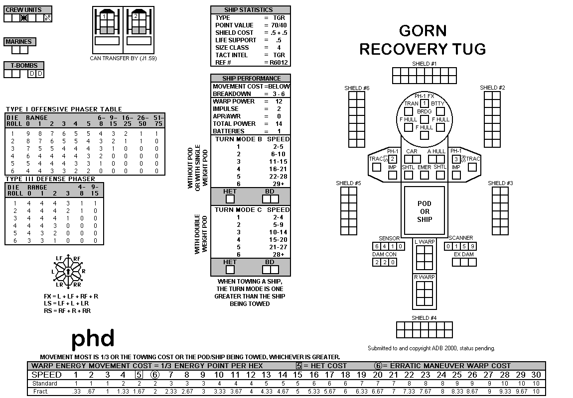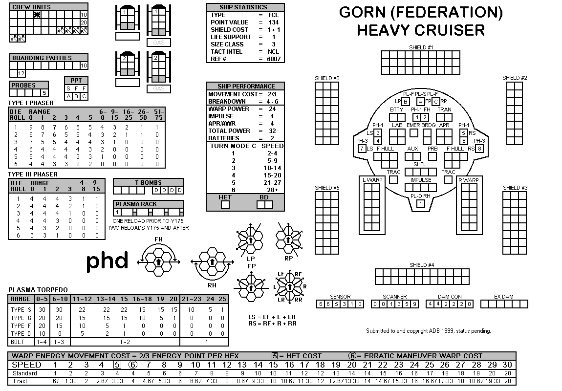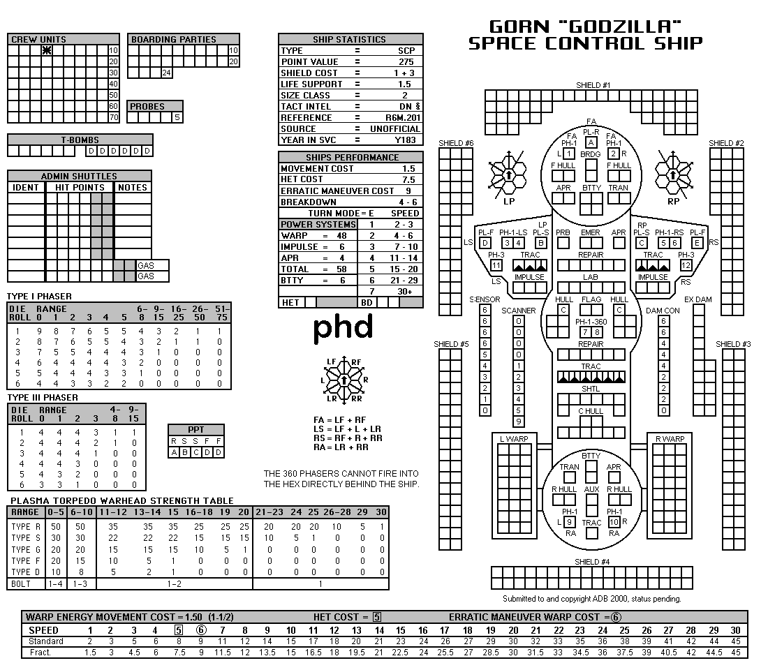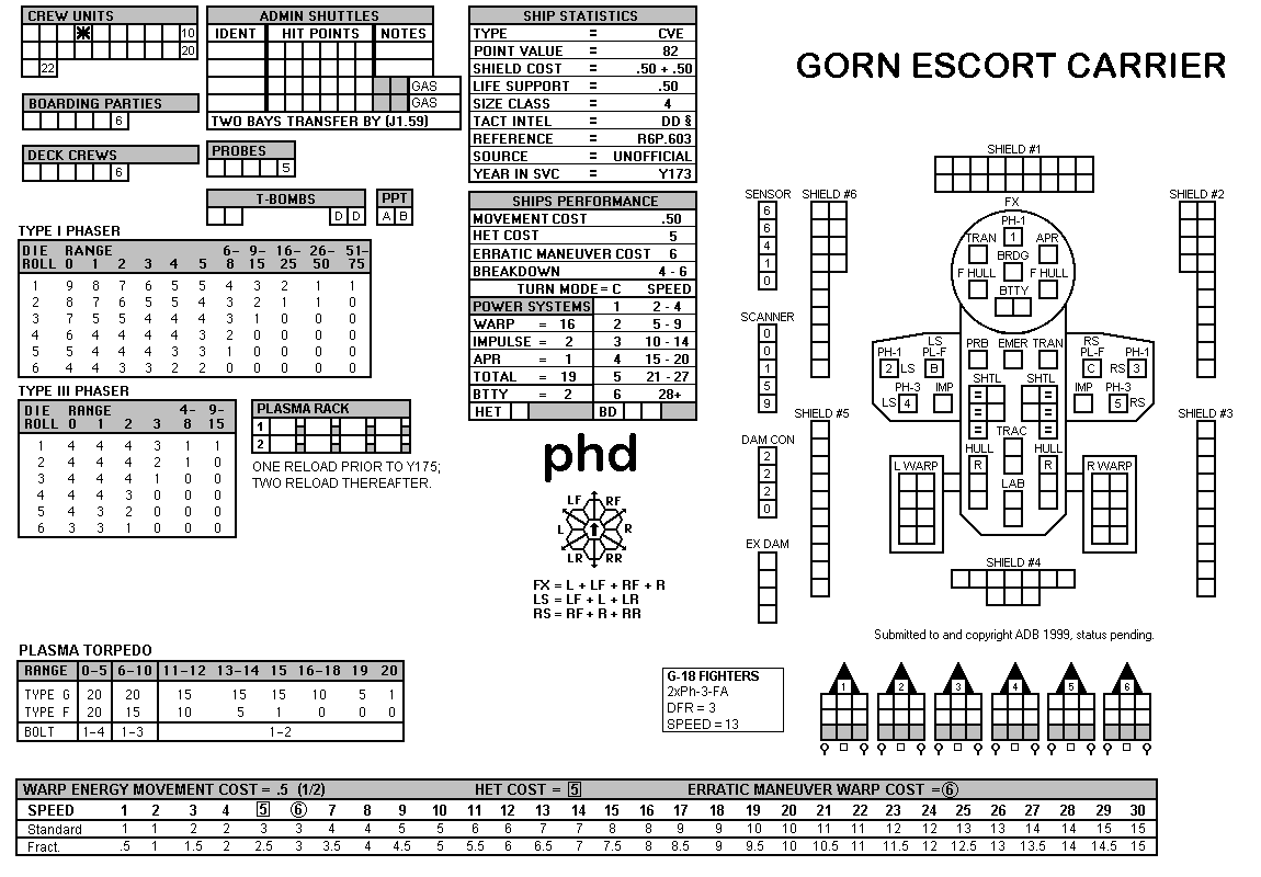 | Note: Due to the small size of this ship, a type-VI drone does 4 pts. of damage rather than 2, and any defensive fire systems treat this ship as if it was a PF. |