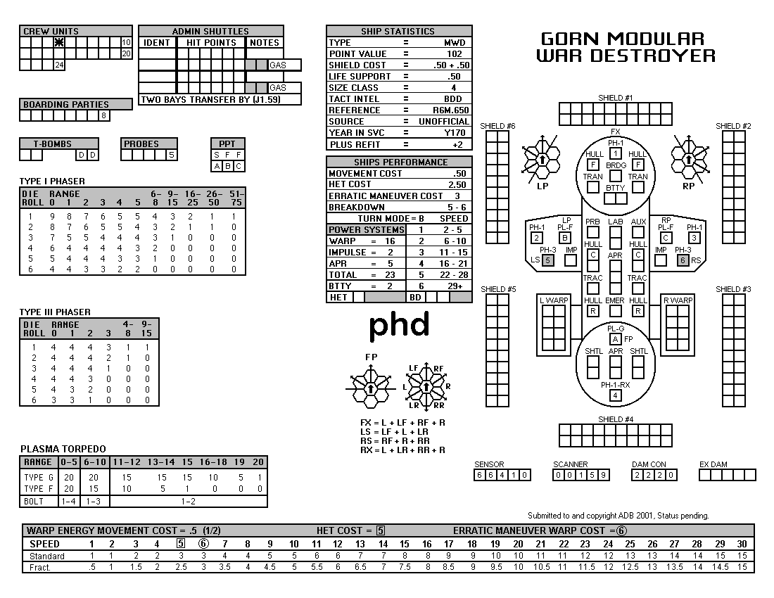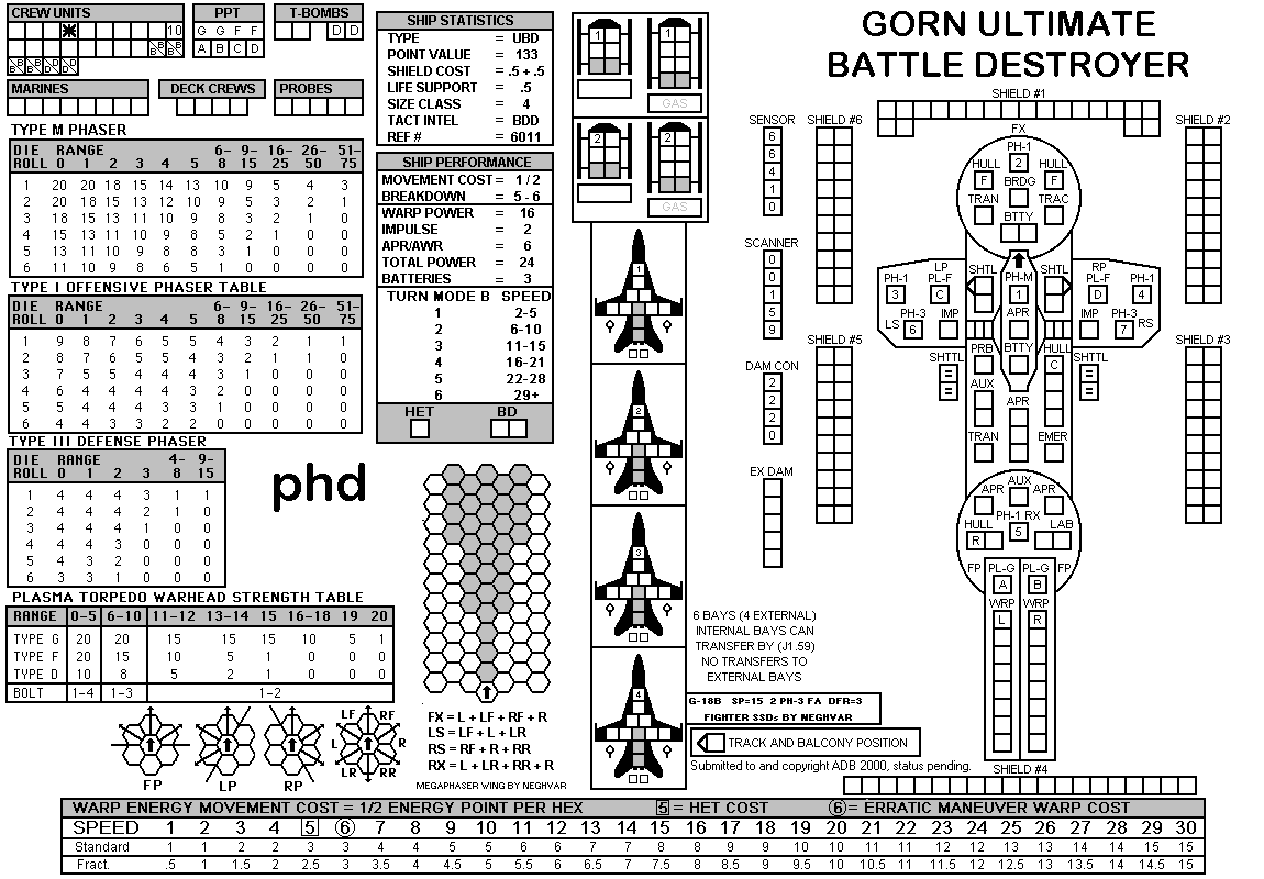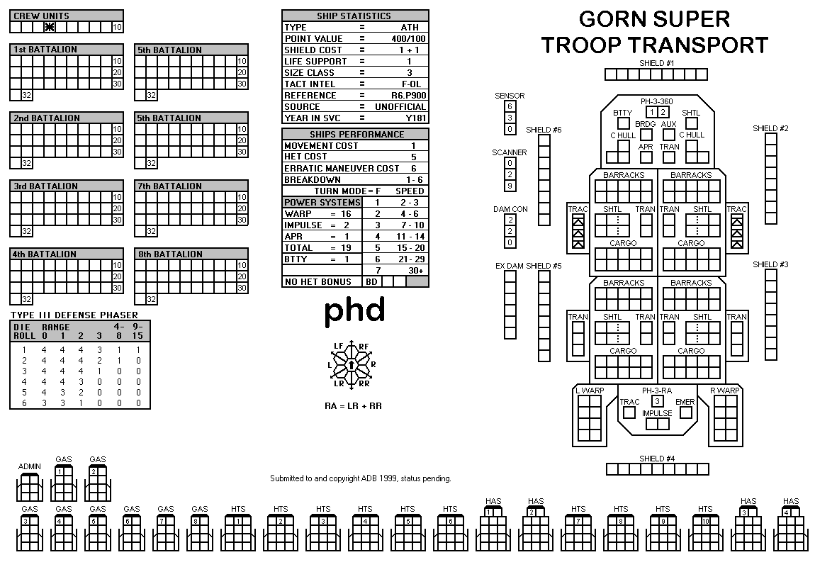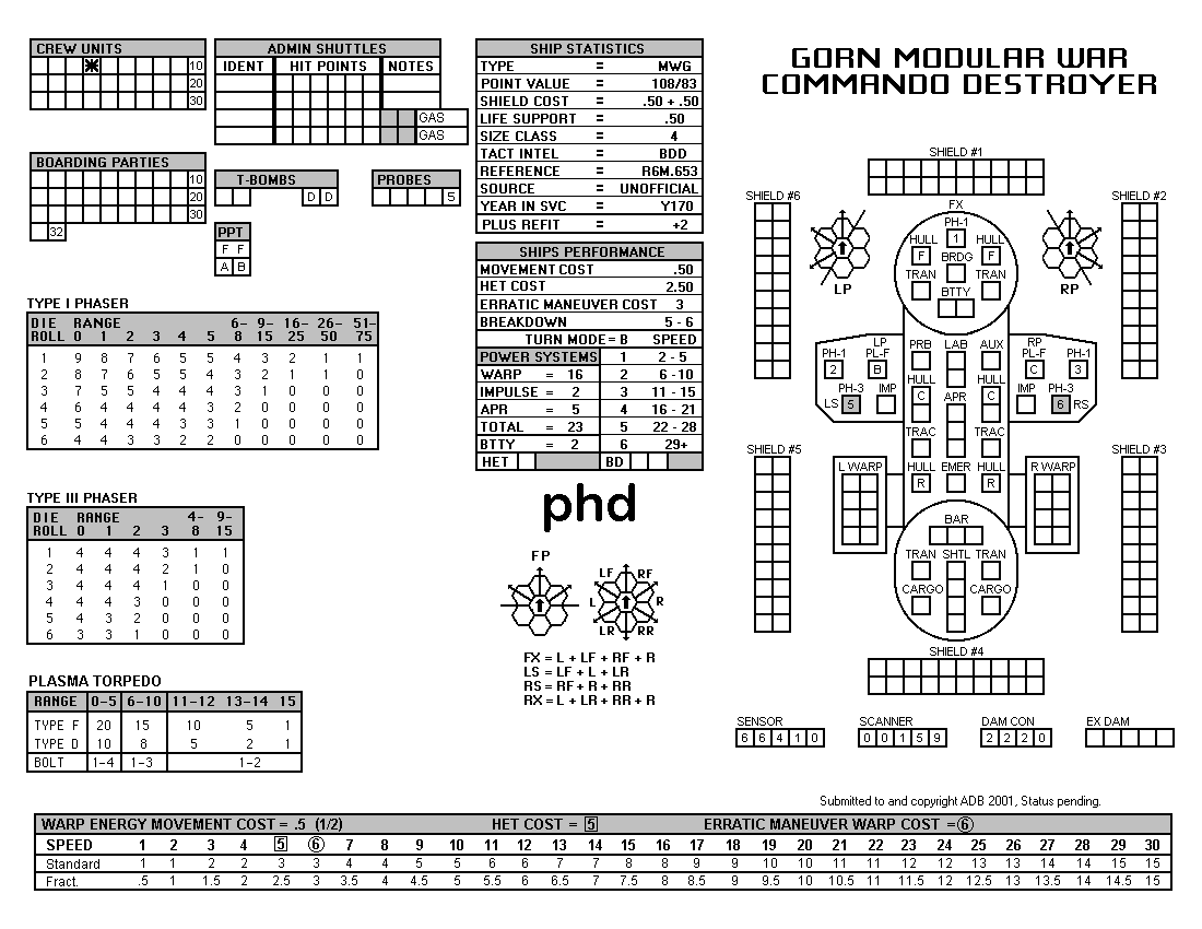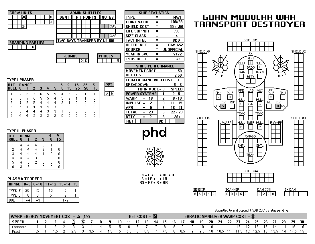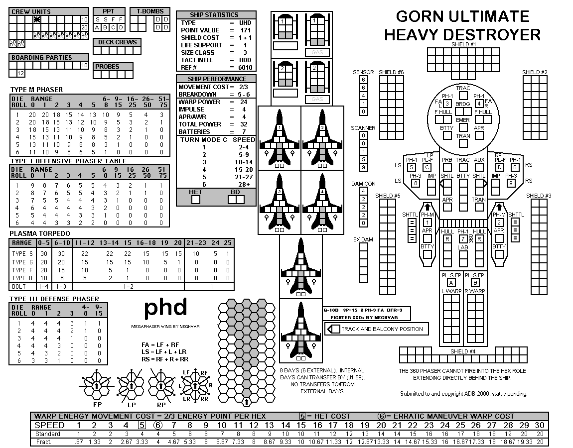 | Note: Due to the small size of this ship, a type-VI drone does 4 pts. of damage rather than 2, and any defensive fire systems treat this ship as if it was a PF. |