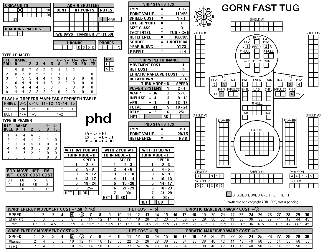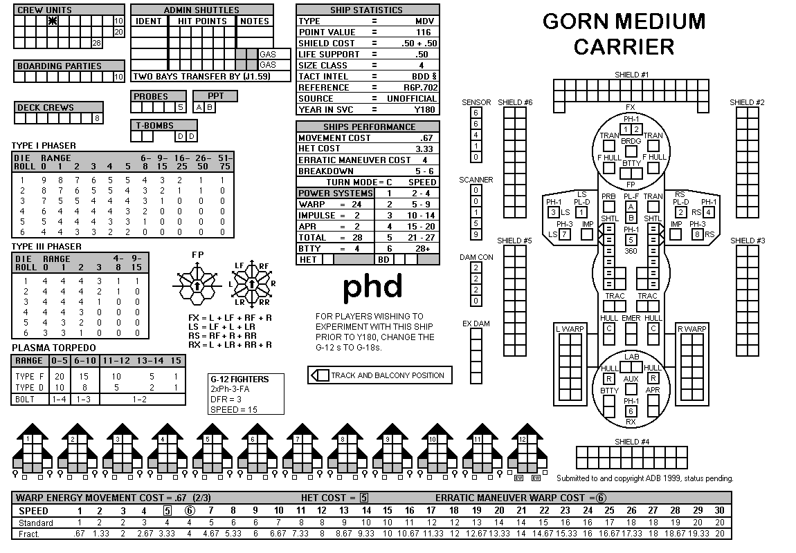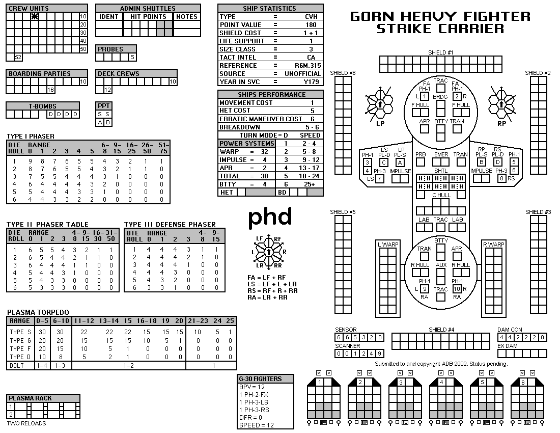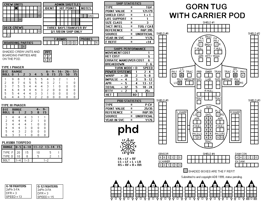 | NOTE: On some SSDs the fighter/shuttles have shaded boxes, these represent the crippled the status of the fighter/shuttle. |