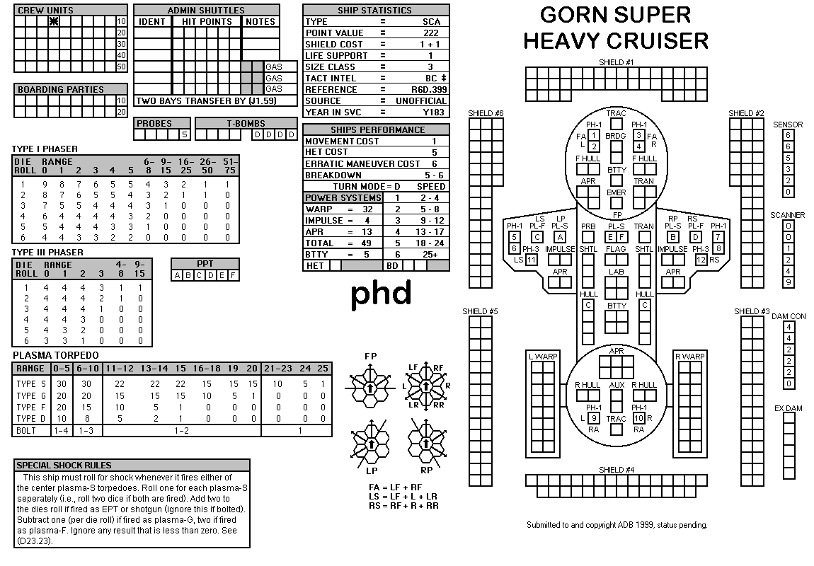 destroyed defending Gorn space against the ISC in Y181. In F&E terms this ships is identical