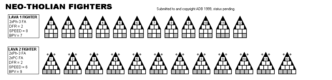 two fighters. The first was the Lava 1. It had 2xPh-3 (FA), speed of 8, a damage factor of 8. The