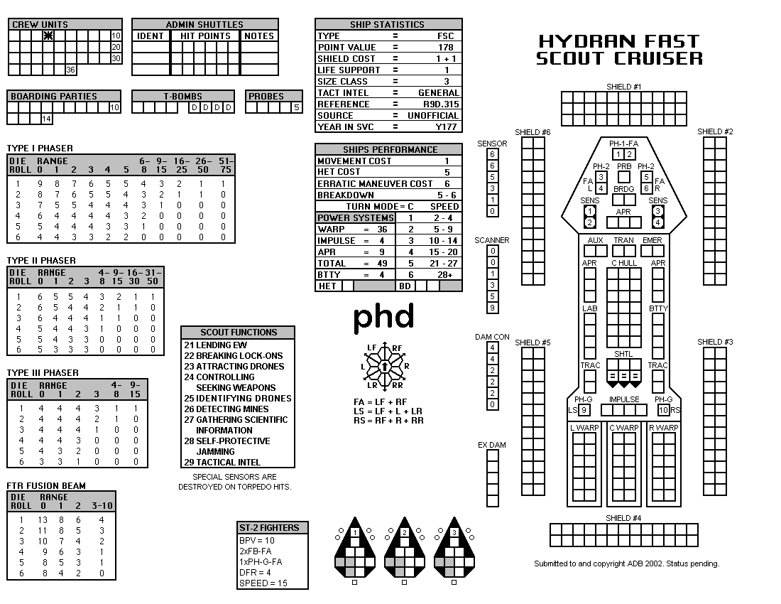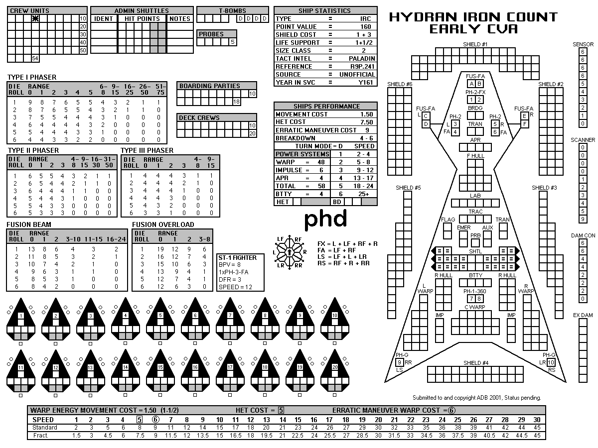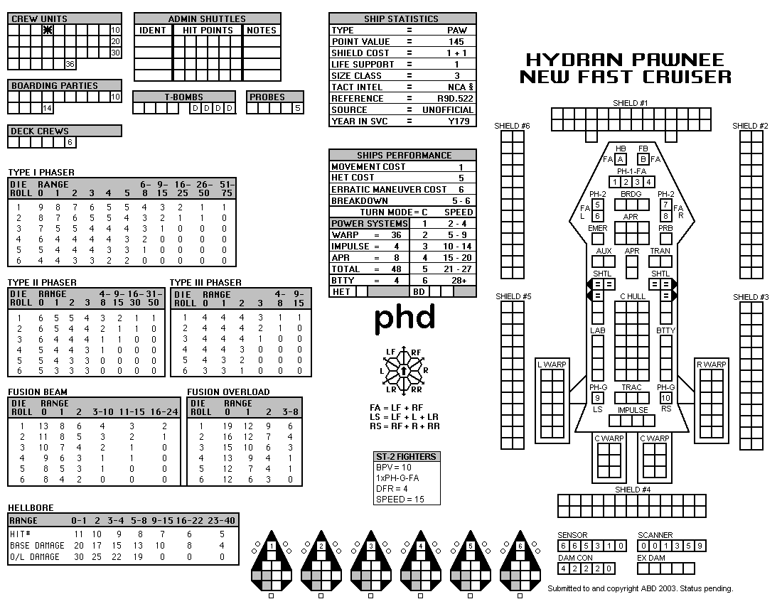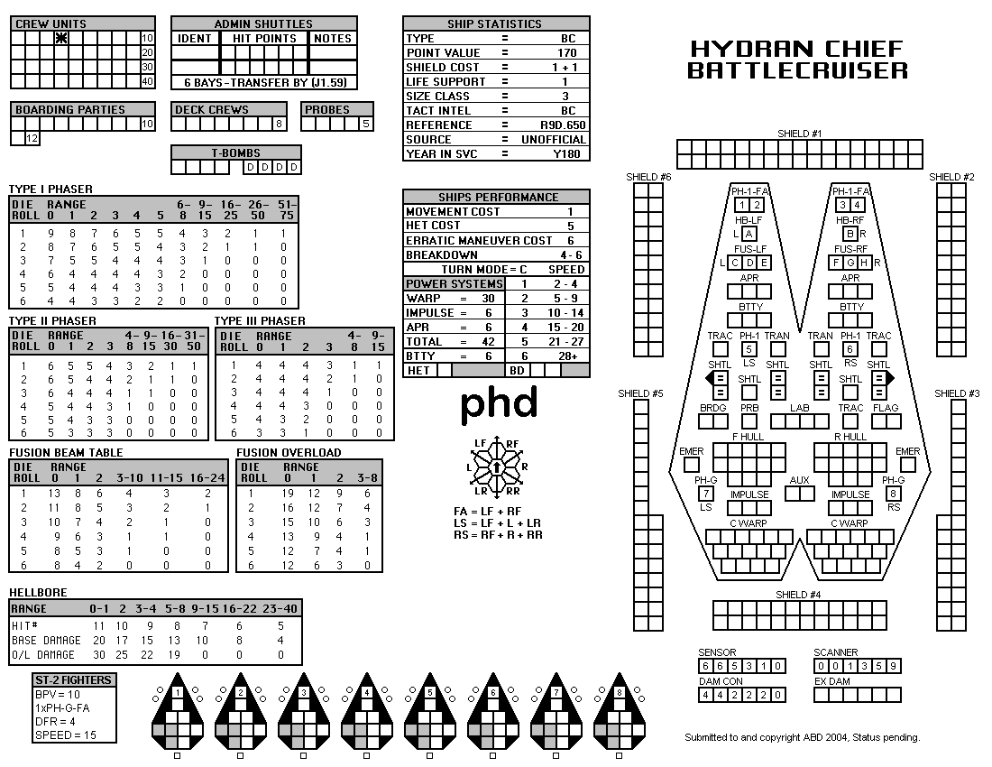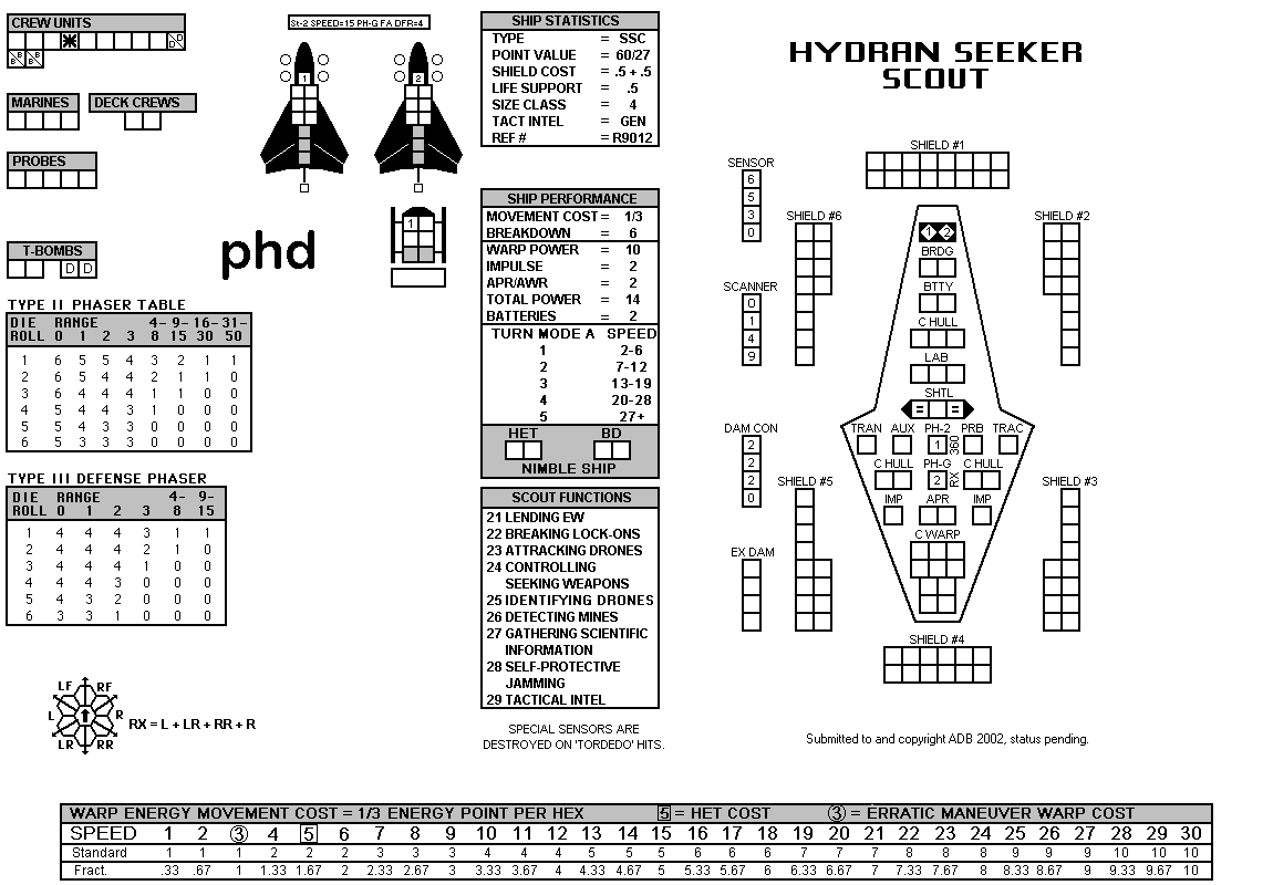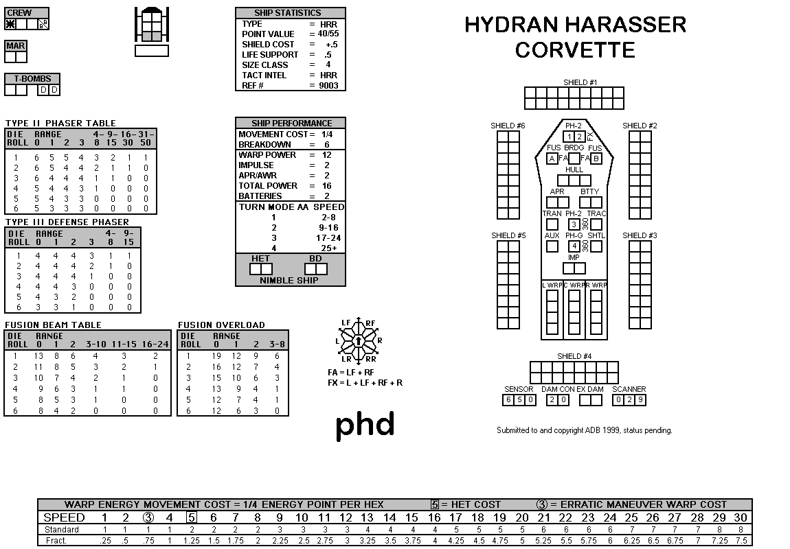 Note: Due to the small size of this ship, a type-VI drone does 4 pts. of damage