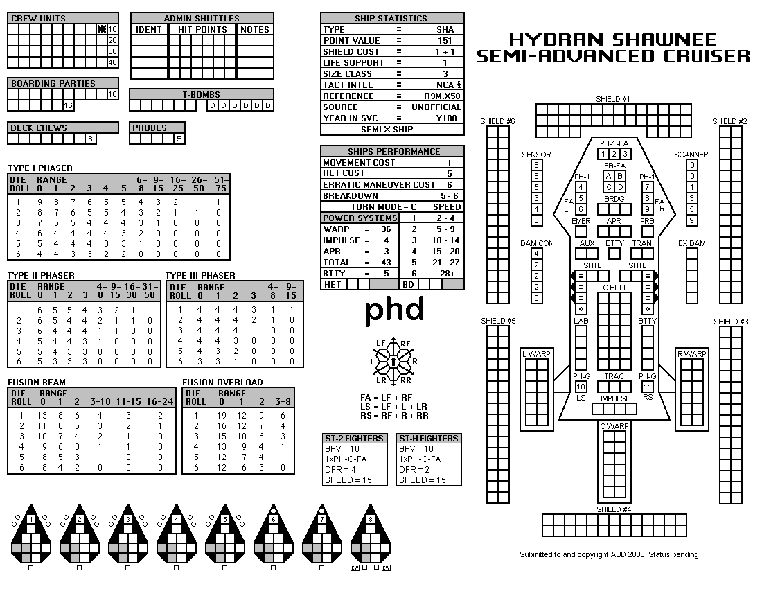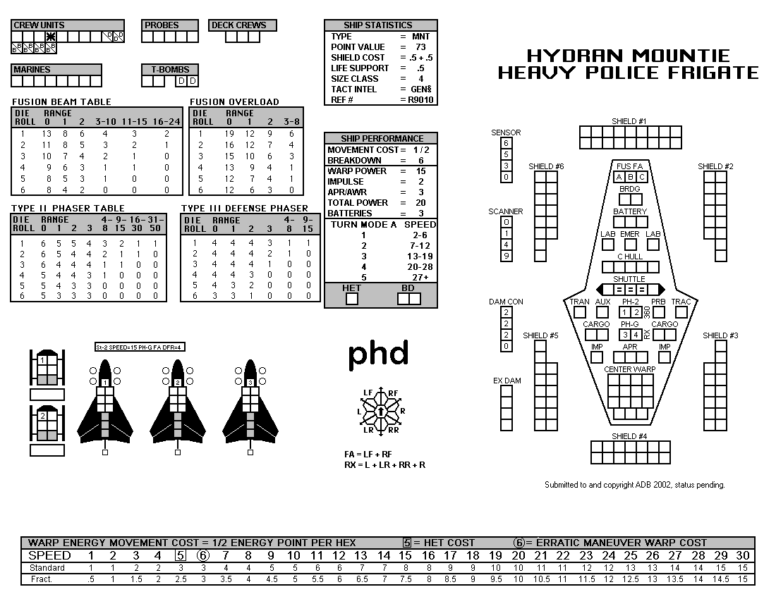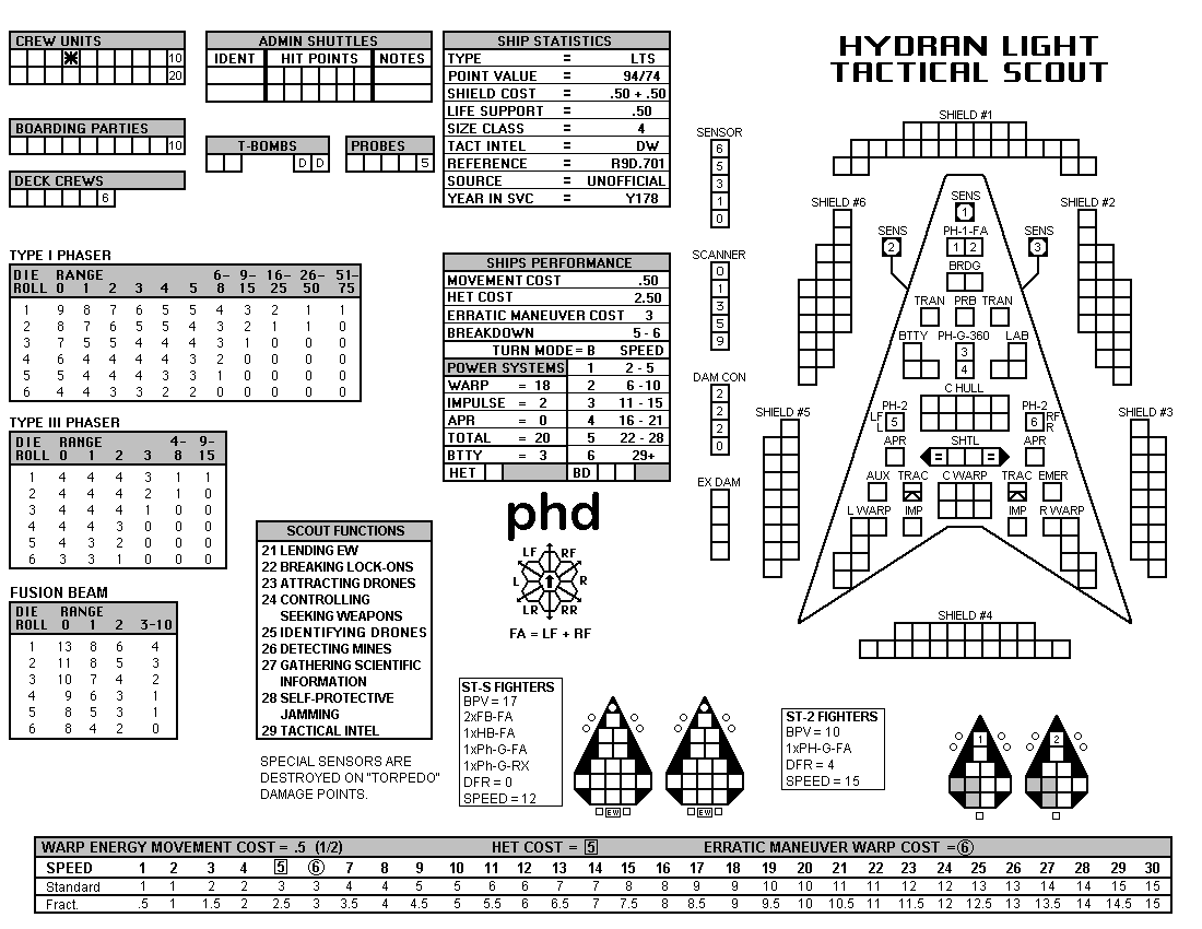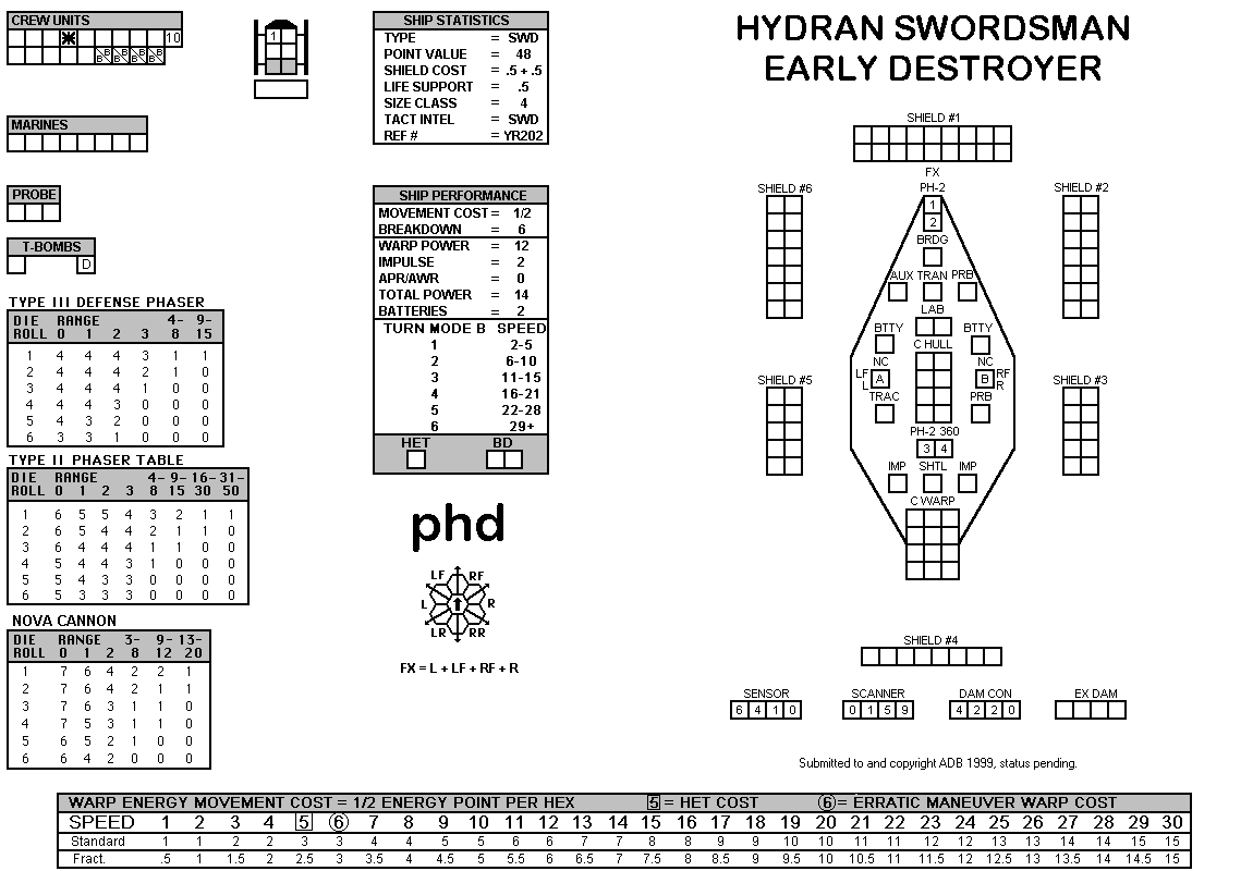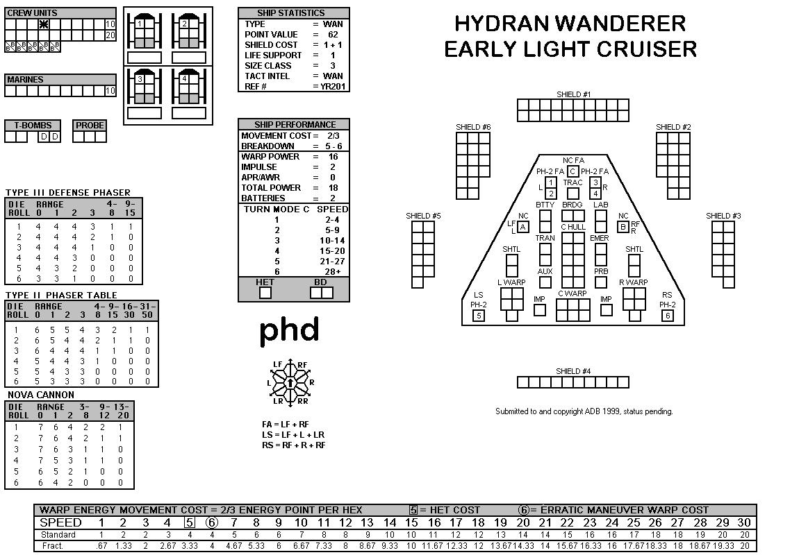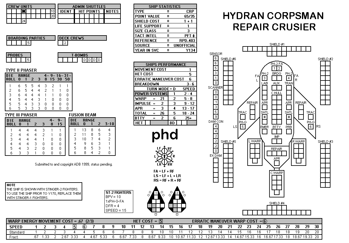 Note: Due to the small size of this ship, a type-VI drone does 4 pts. of damage
