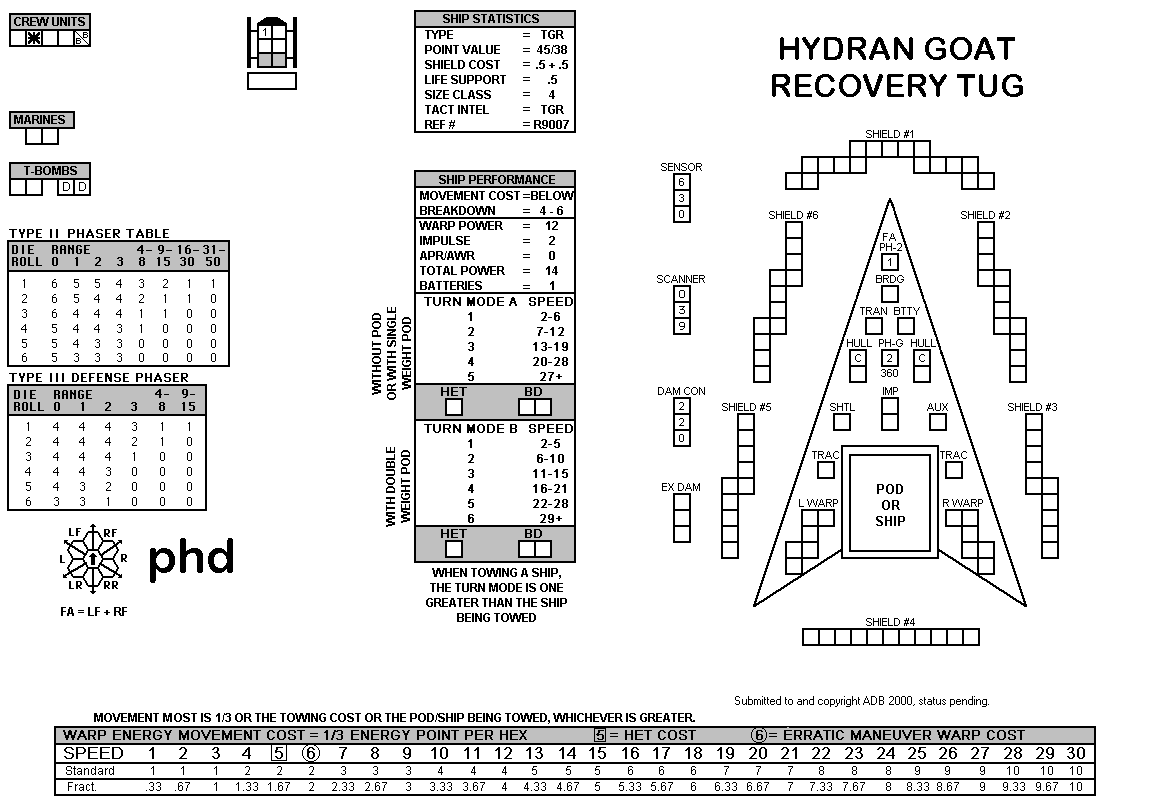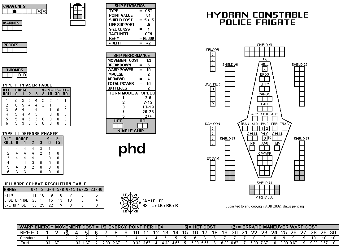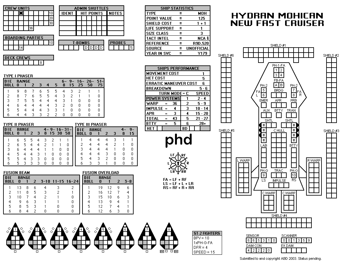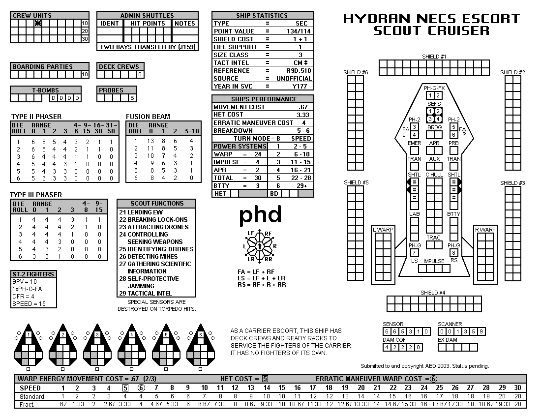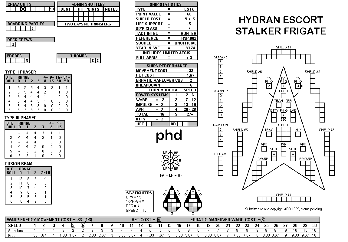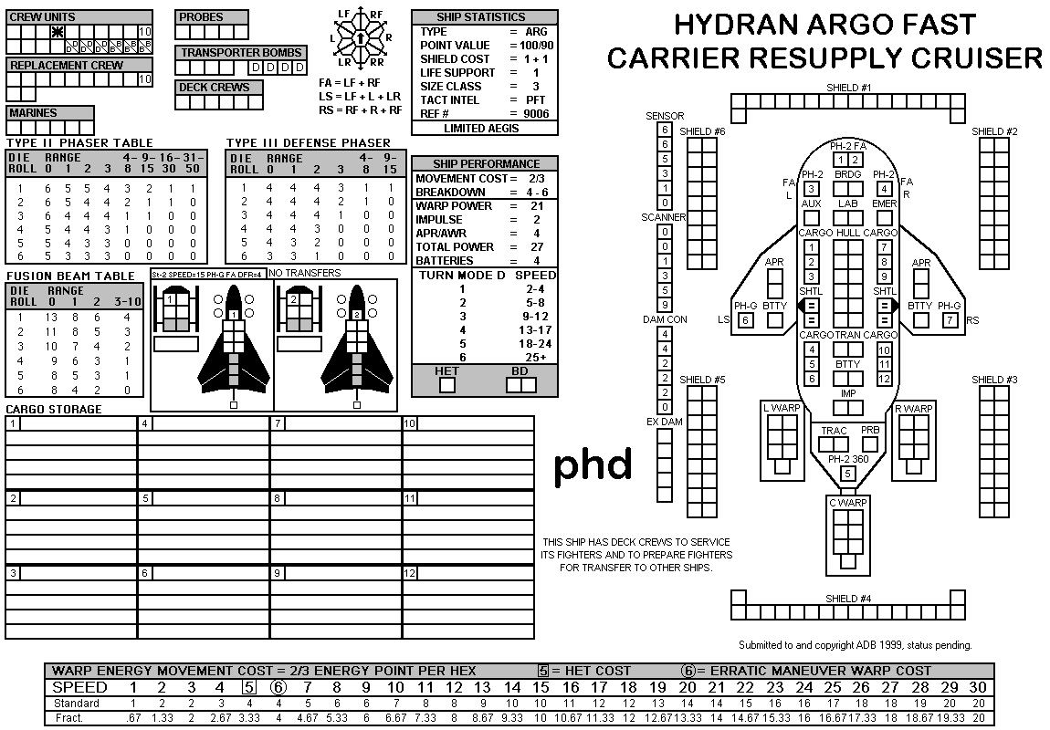 Note: Due to the small size of this ship, a type-VI drone does 4 pts. of damage