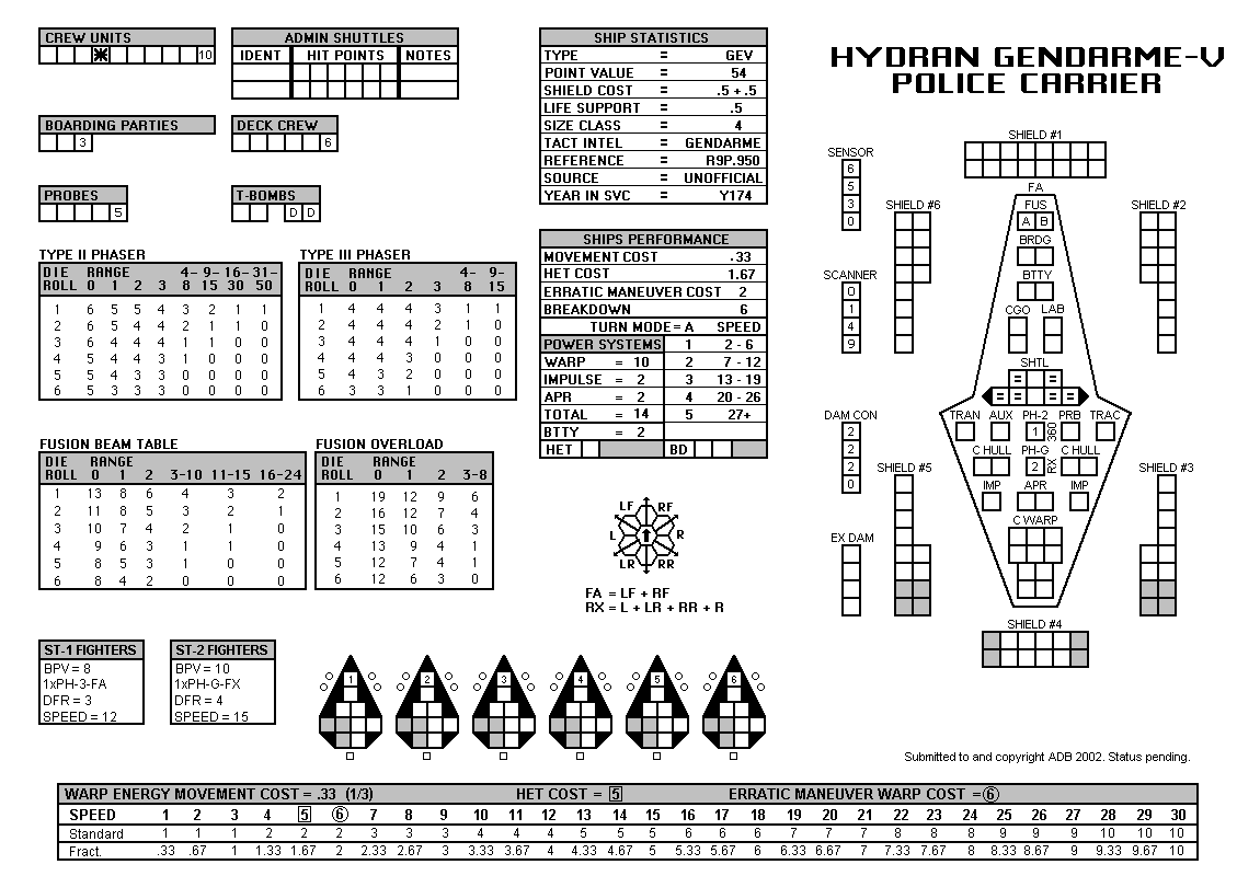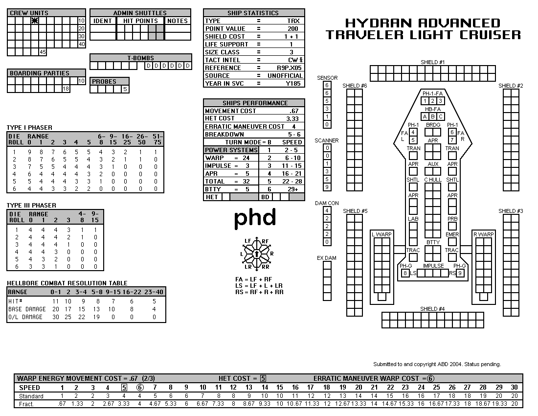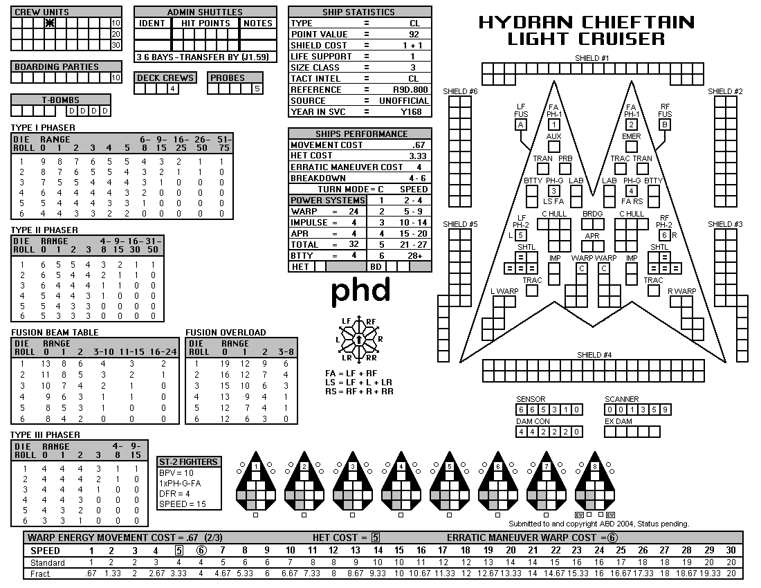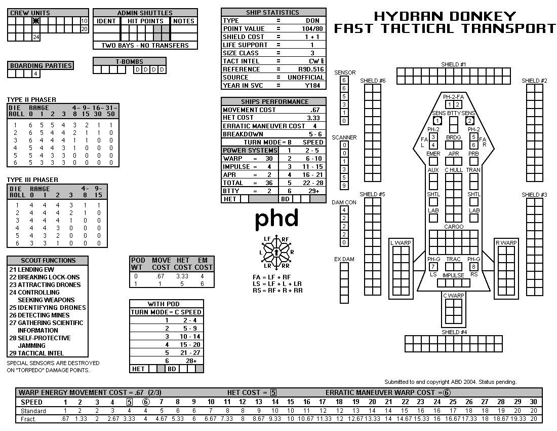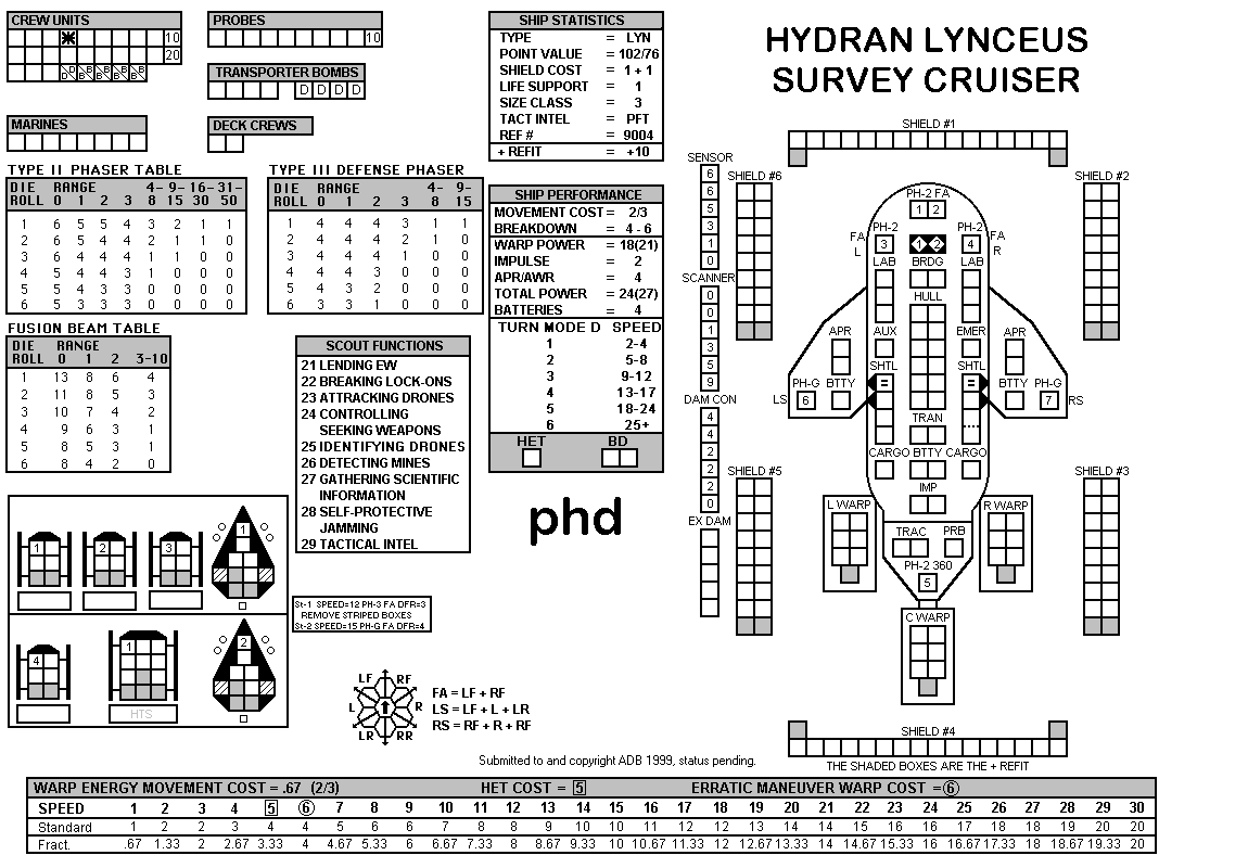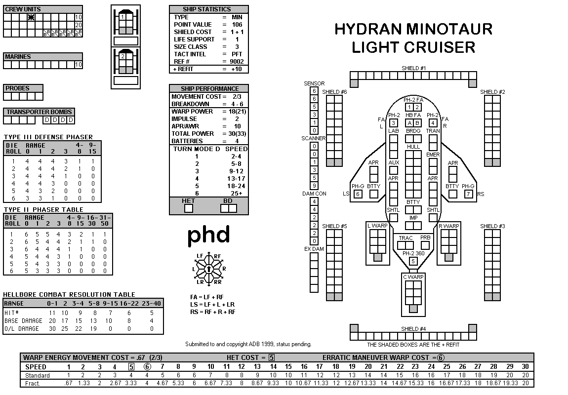 Note: Due to the small size of this ship, a type-VI drone does 4 pts. of damage