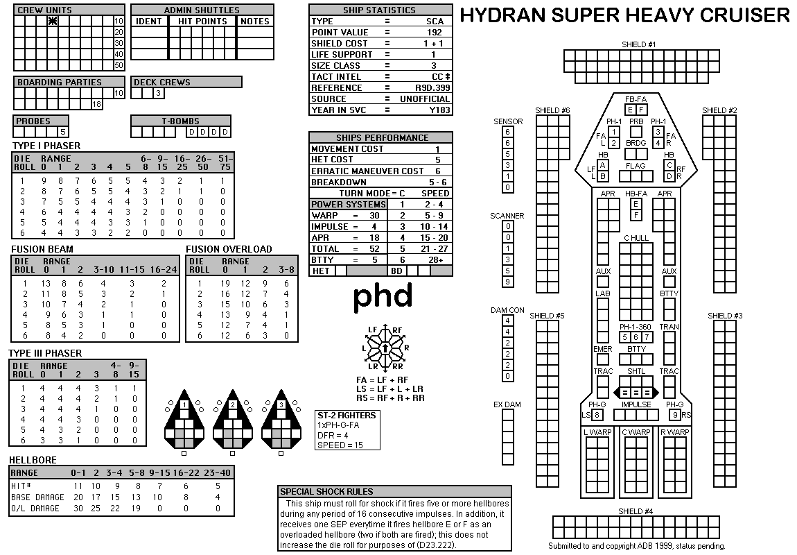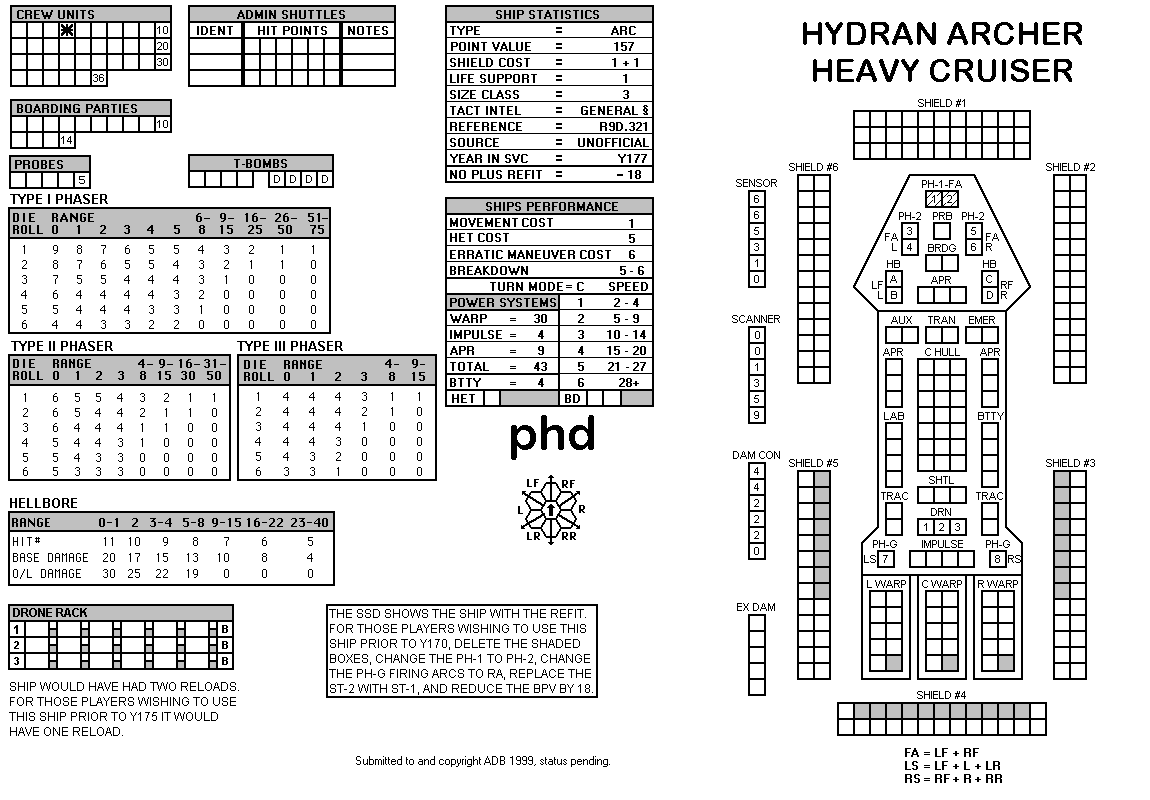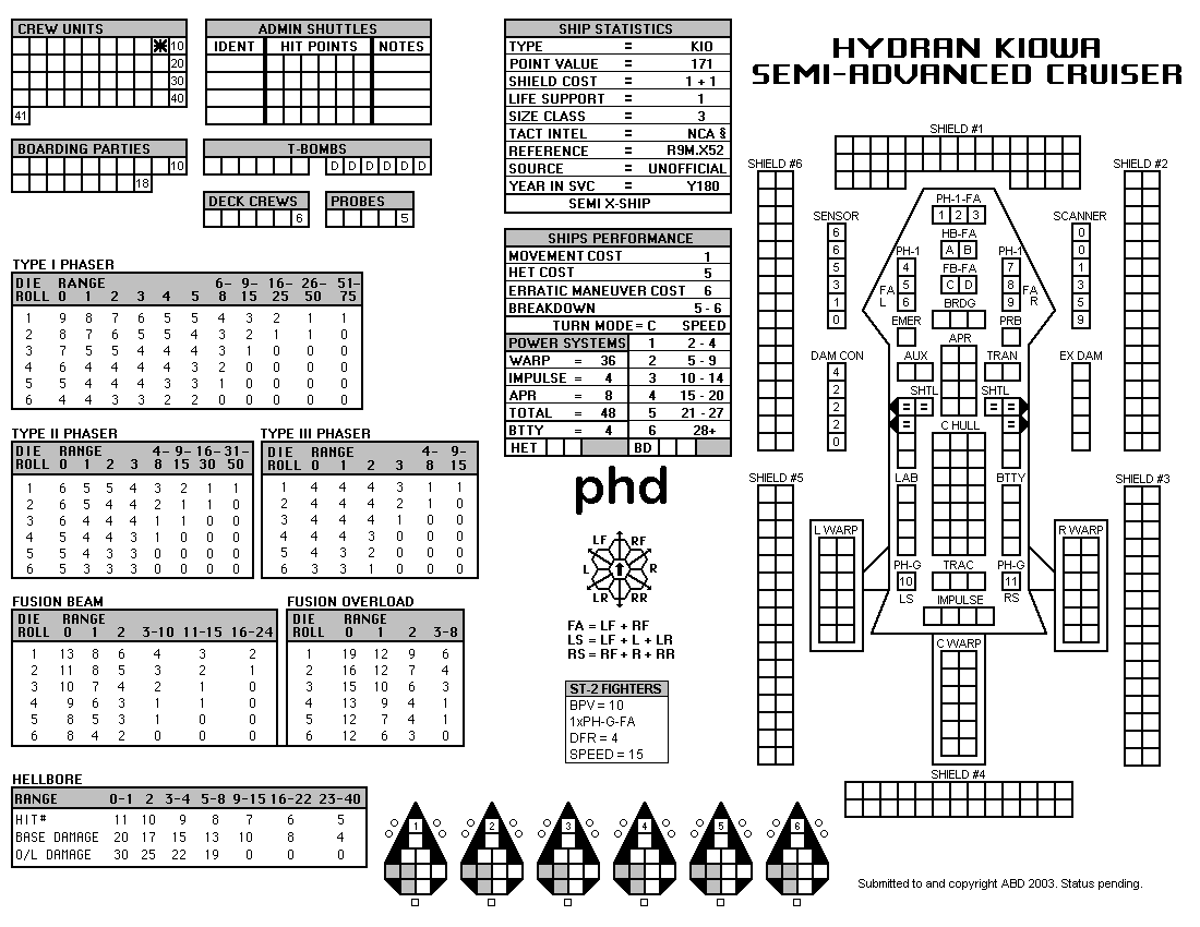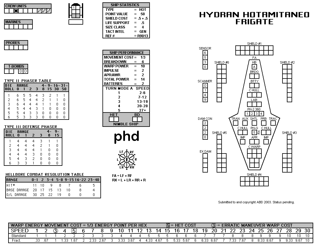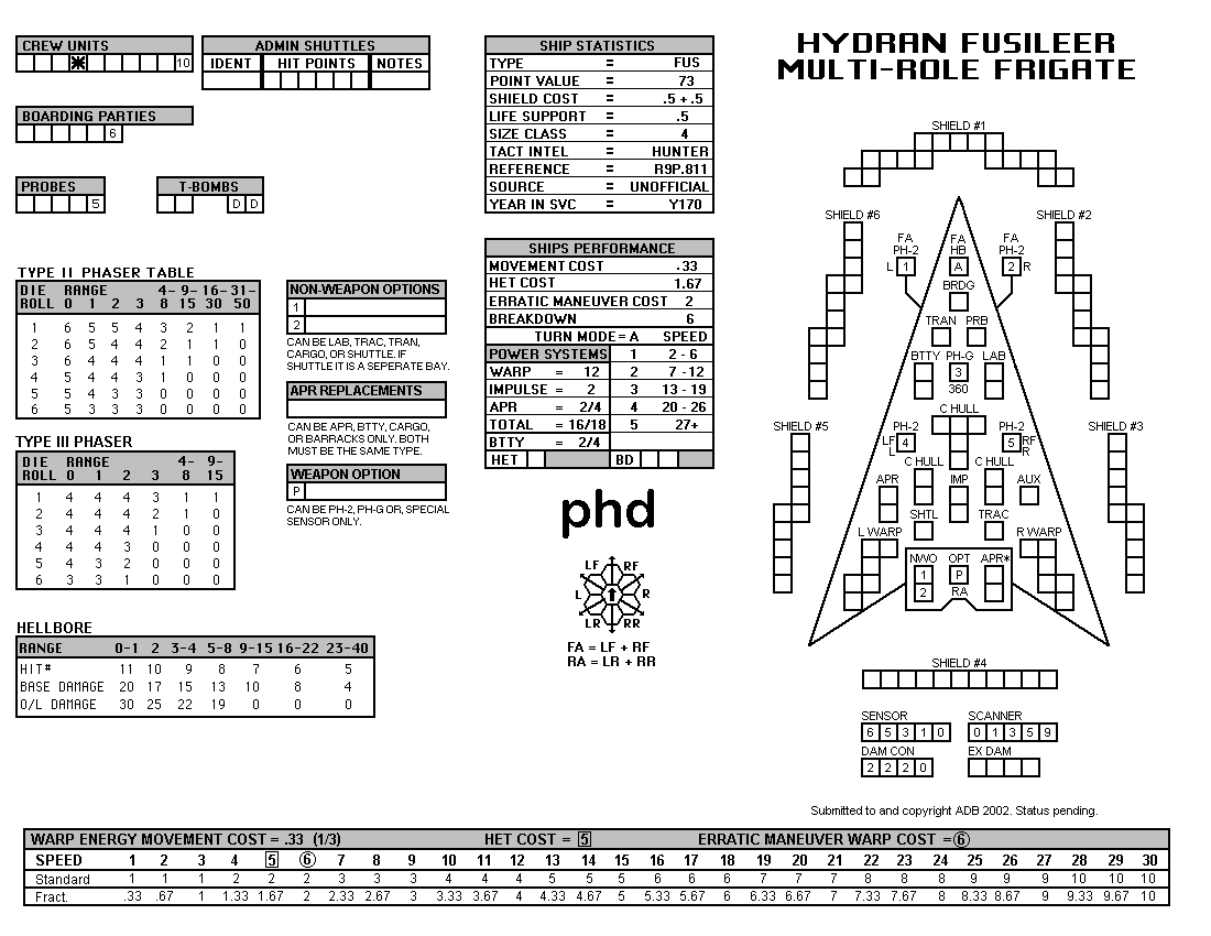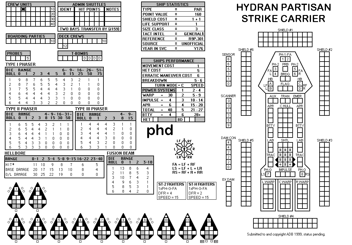 Note: Due to the small size of this ship, a type-VI drone does 4 pts. of damage