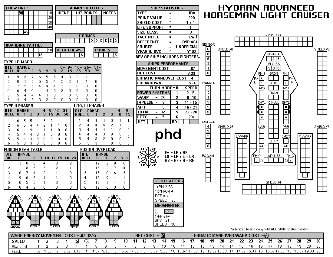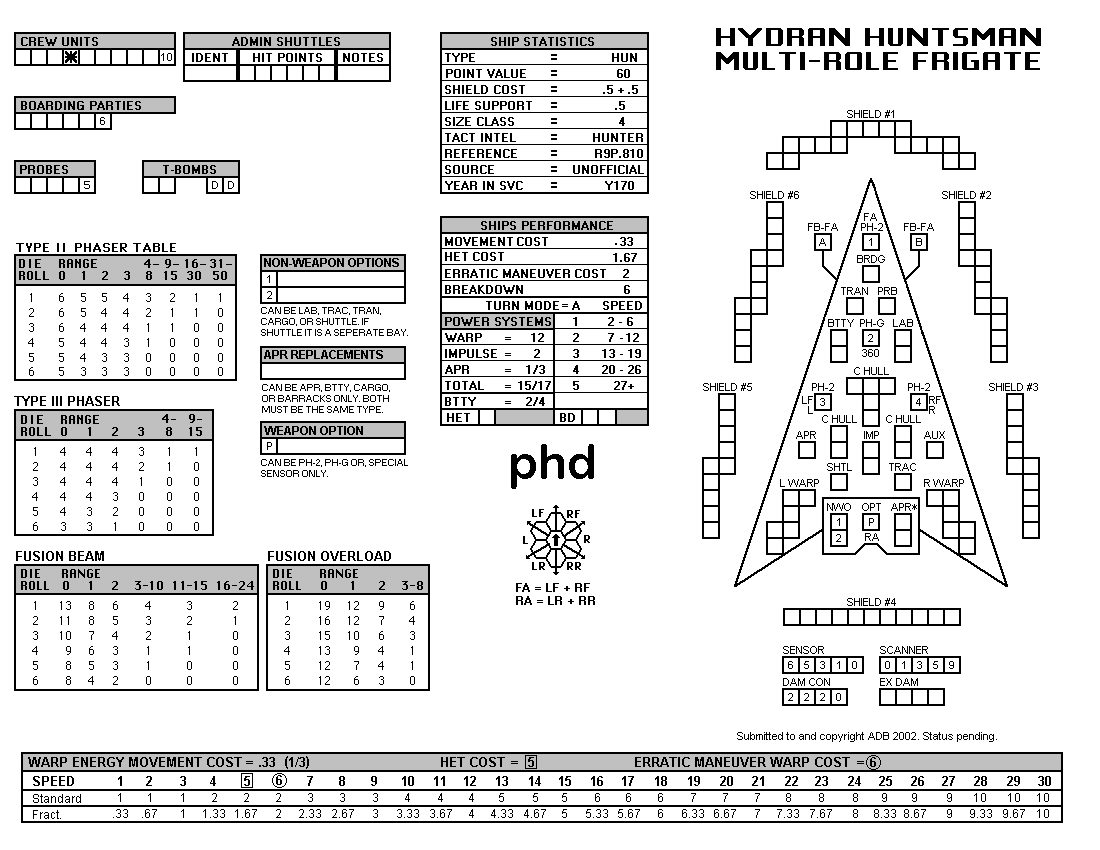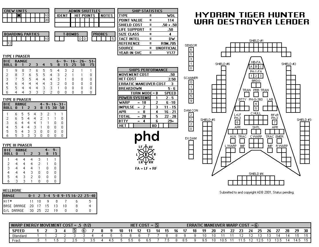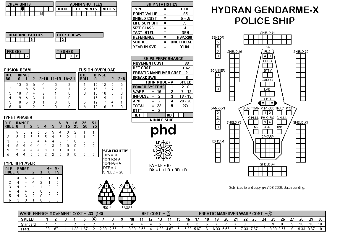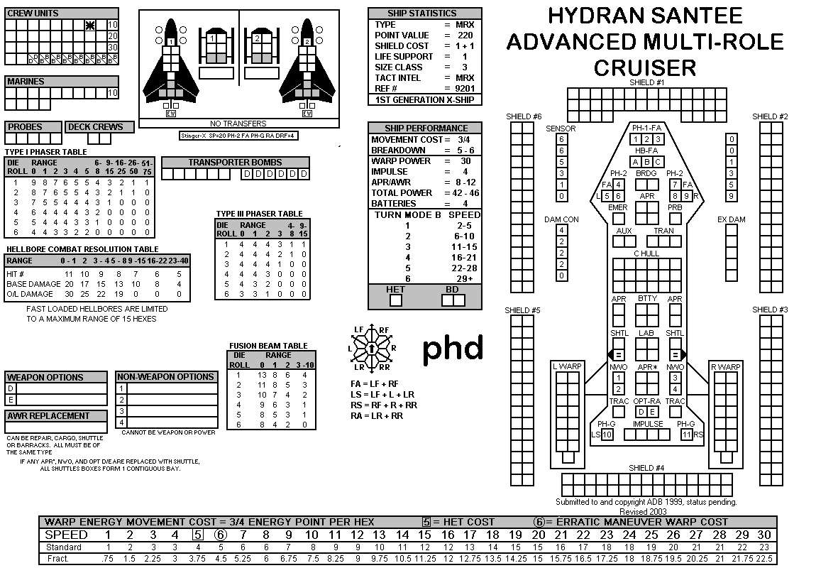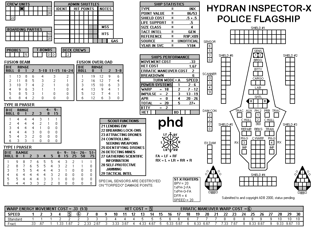 Note: Due to the small size of this ship, a type-VI drone does 4 pts. of damage