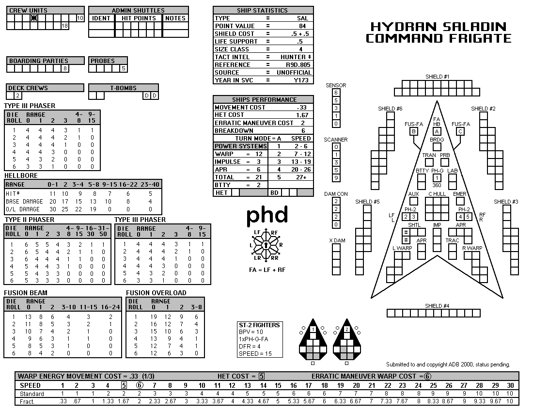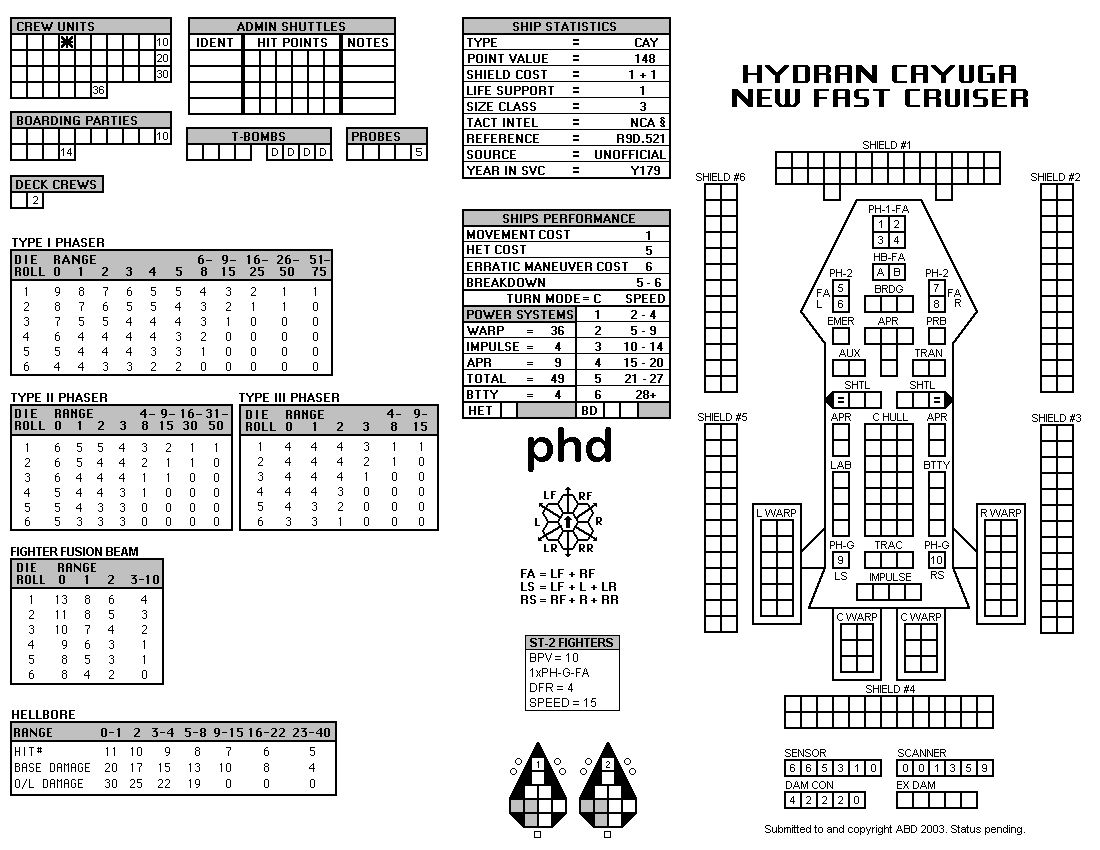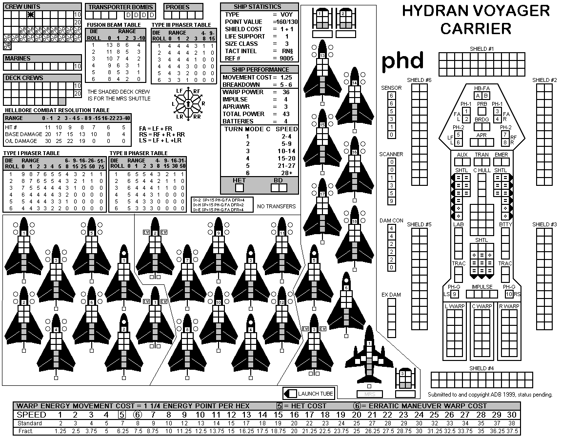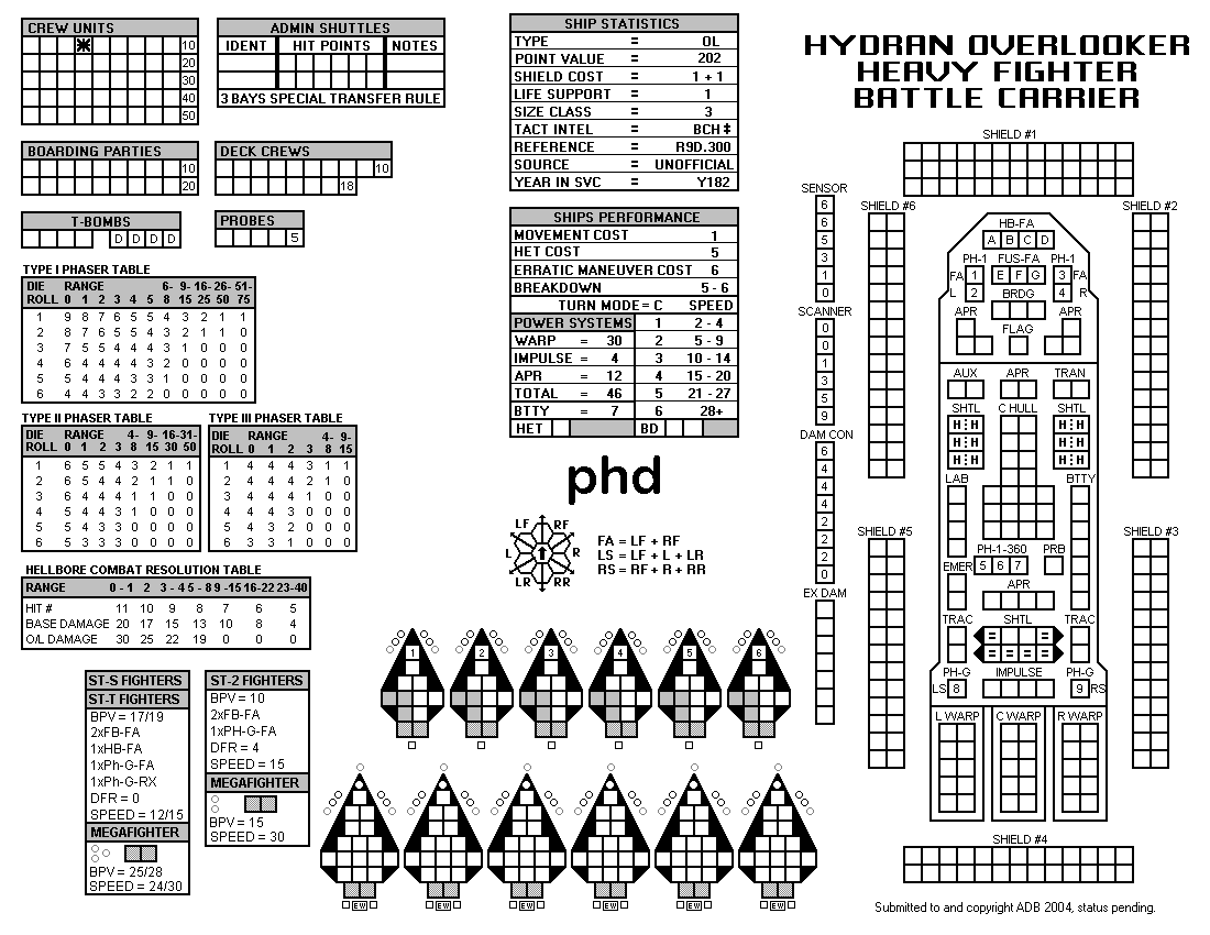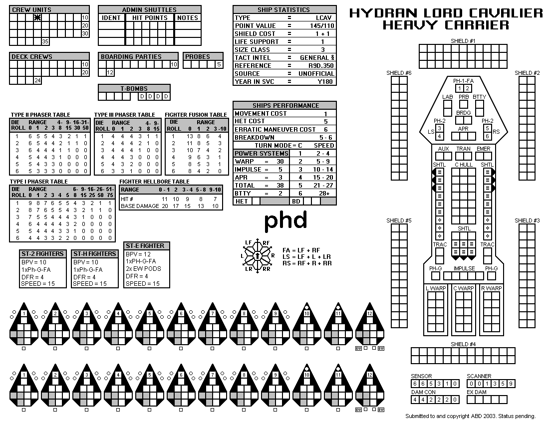 | NOTE: On some SSDs the fighter/shuttles have shaded boxes, these represent