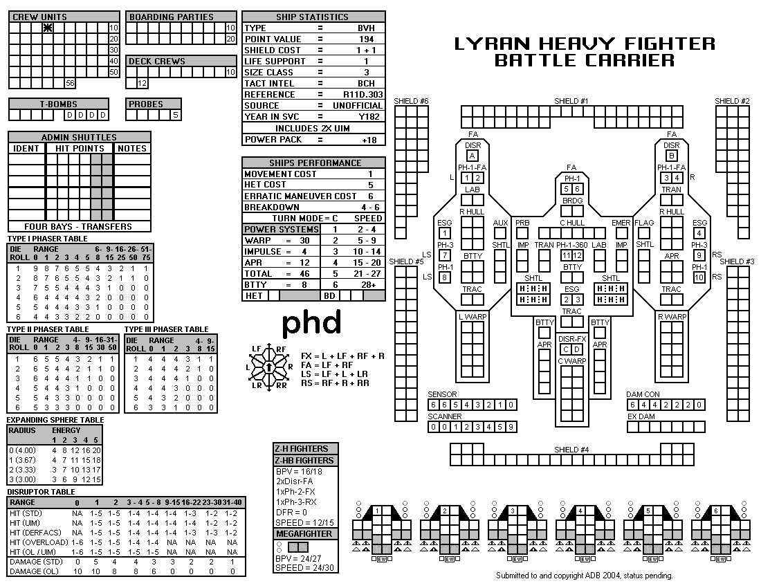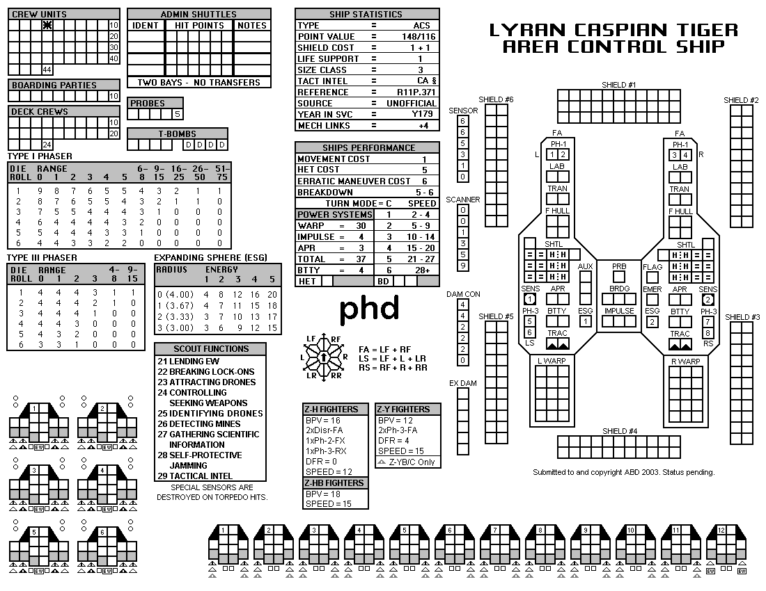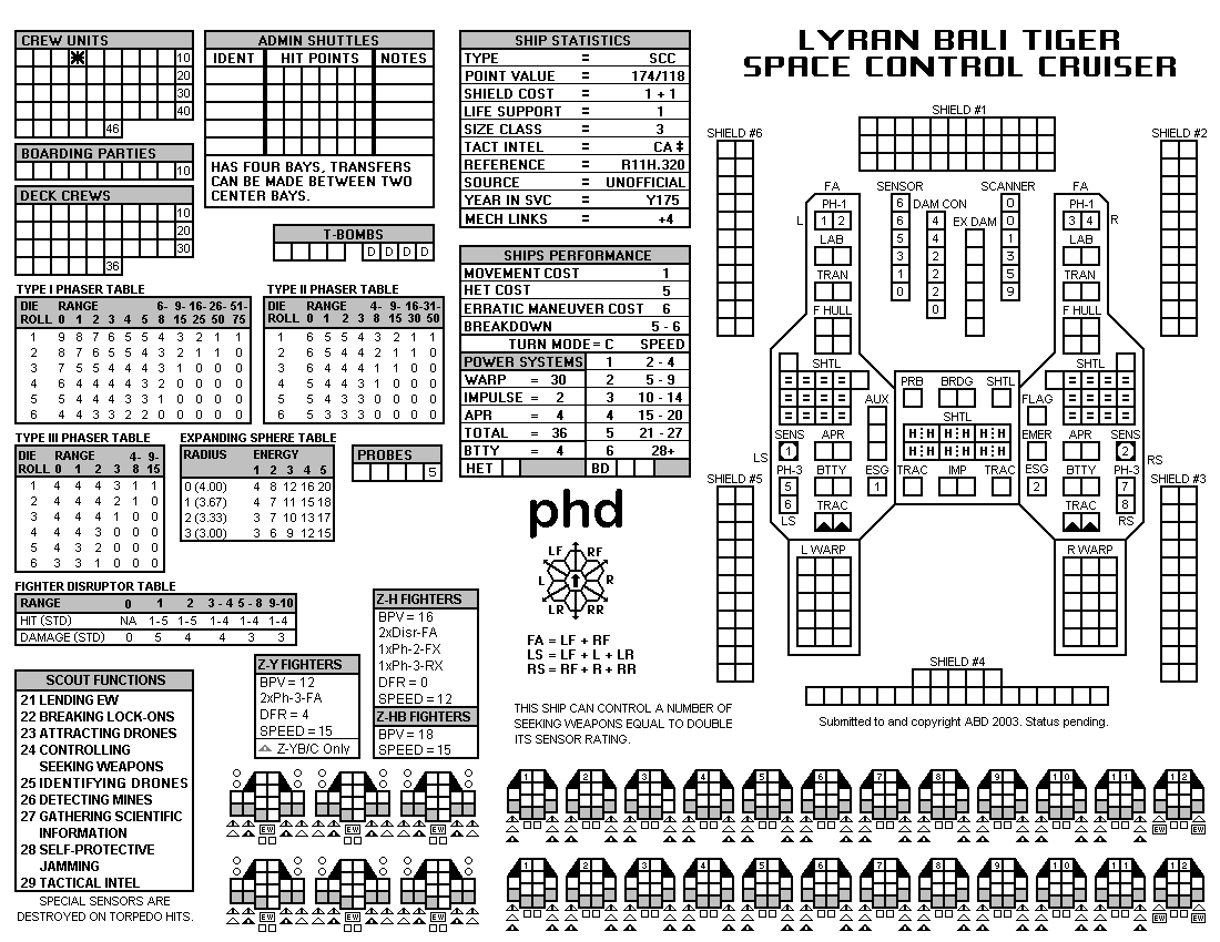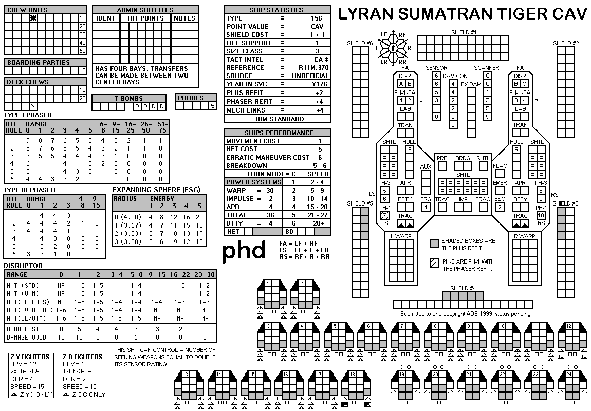 | NOTE: On some SSDs the fighter/shuttles have shaded boxes, these represent