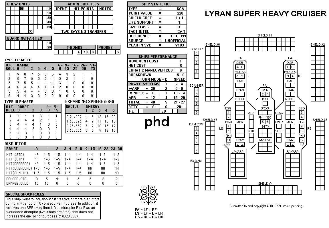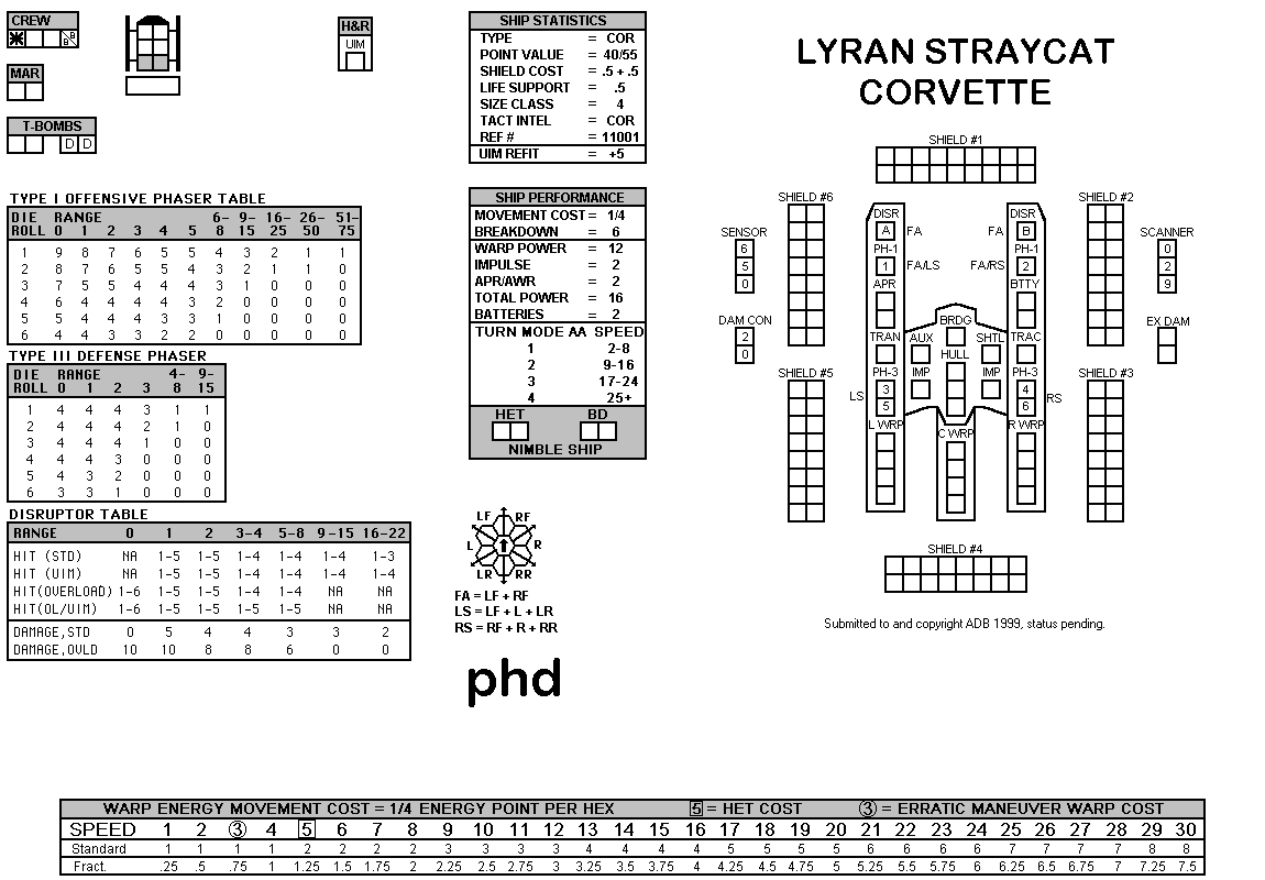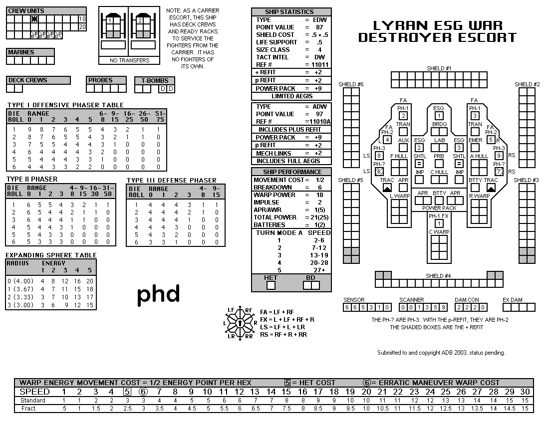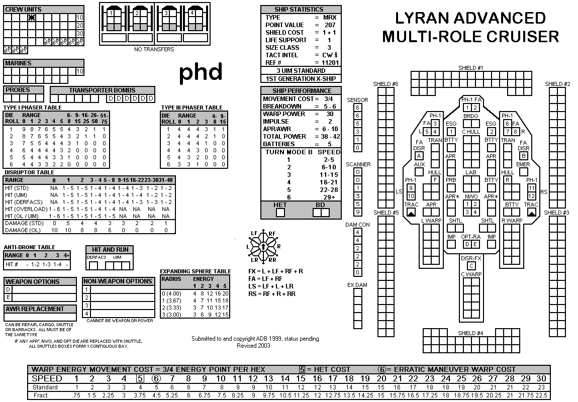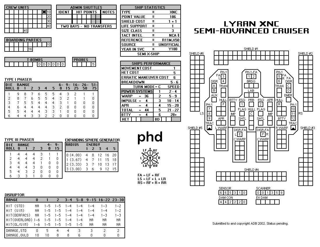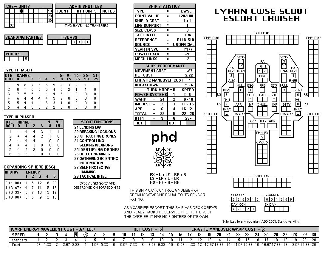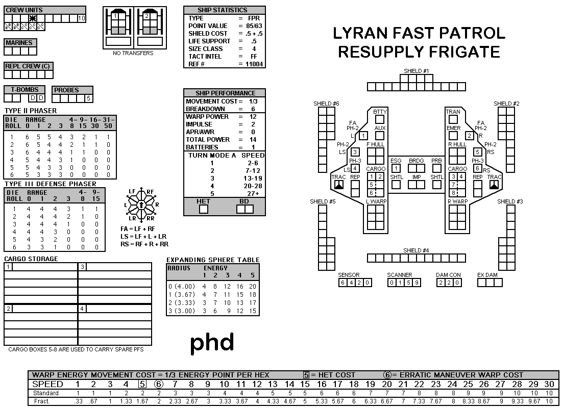 | Note: Due to the small size of this ship, a type-VI drone does 4 pts. of