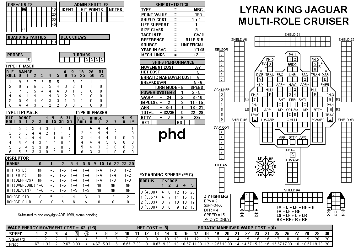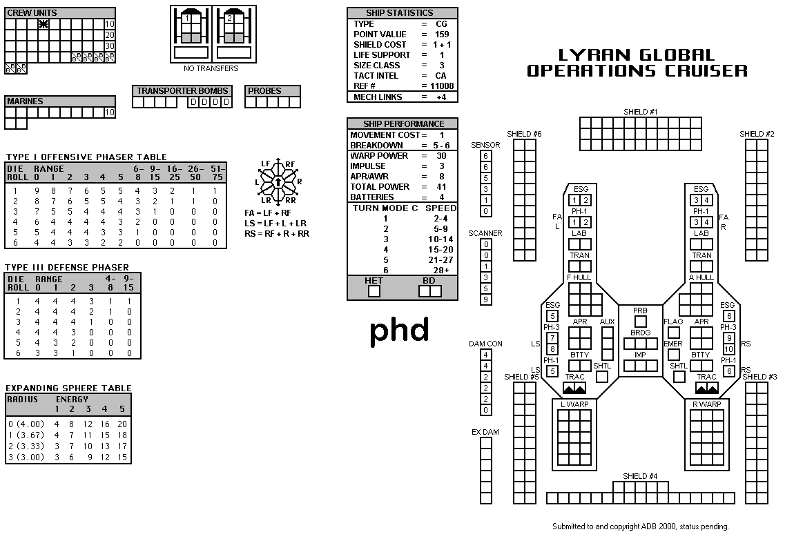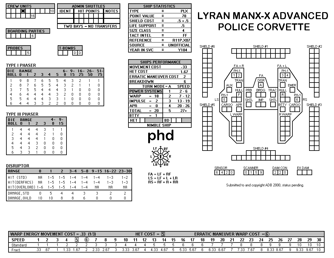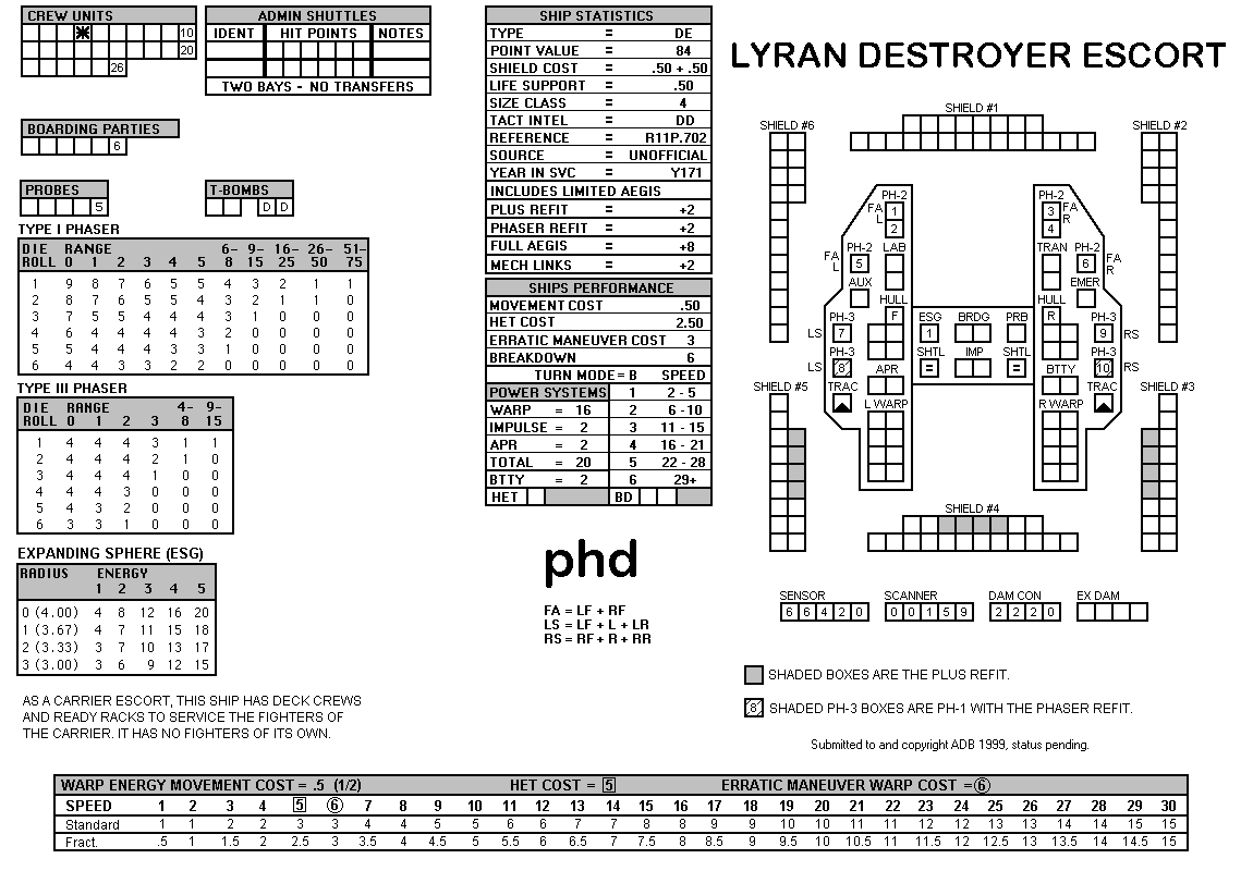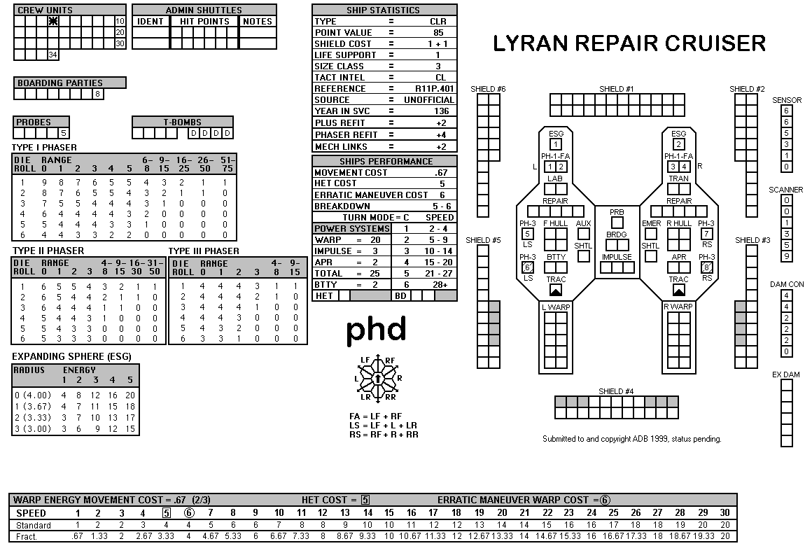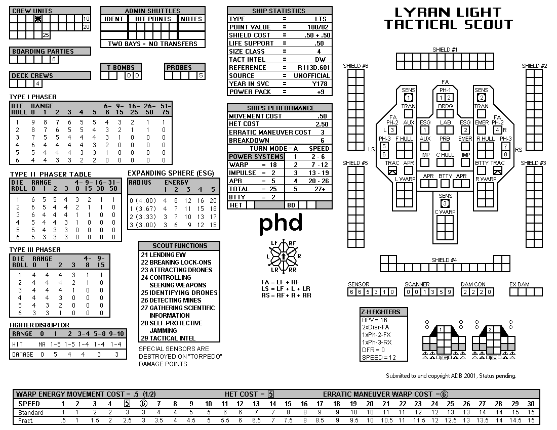| Note: Due to the small size of this ship, a type-VI drone does 4 pts. of