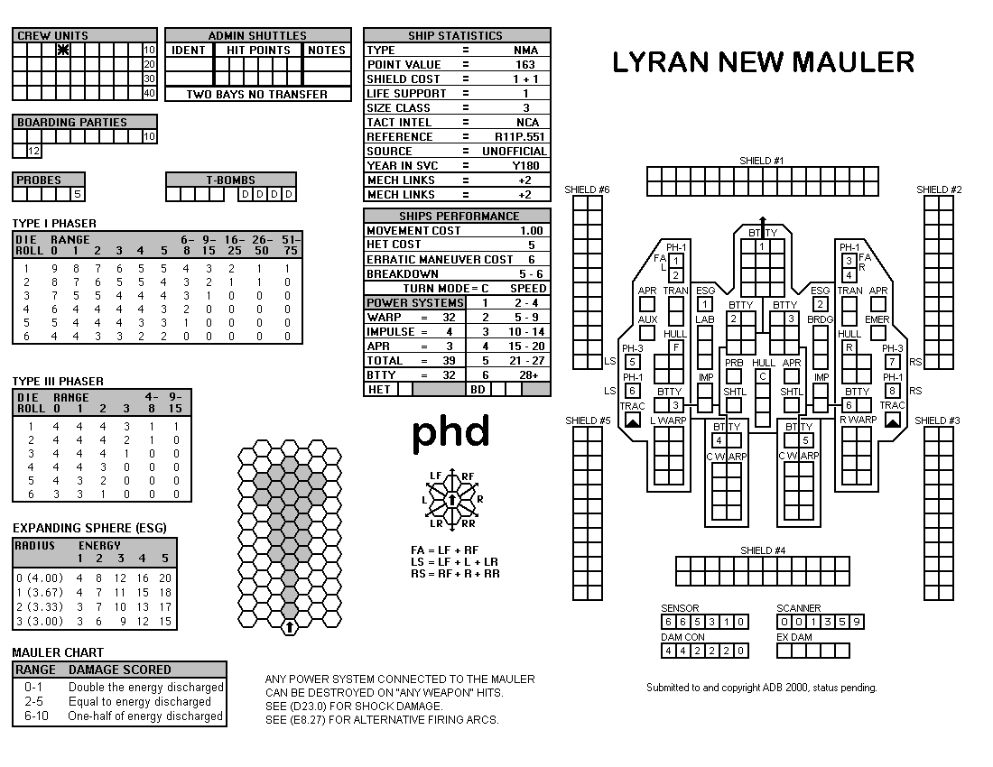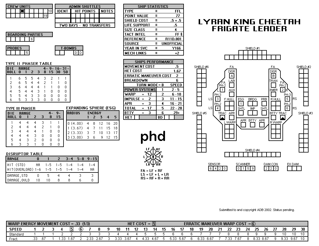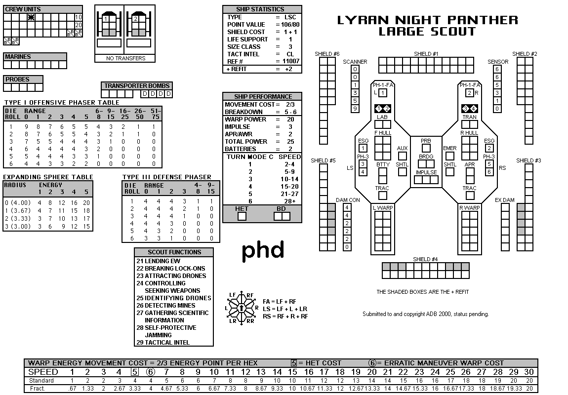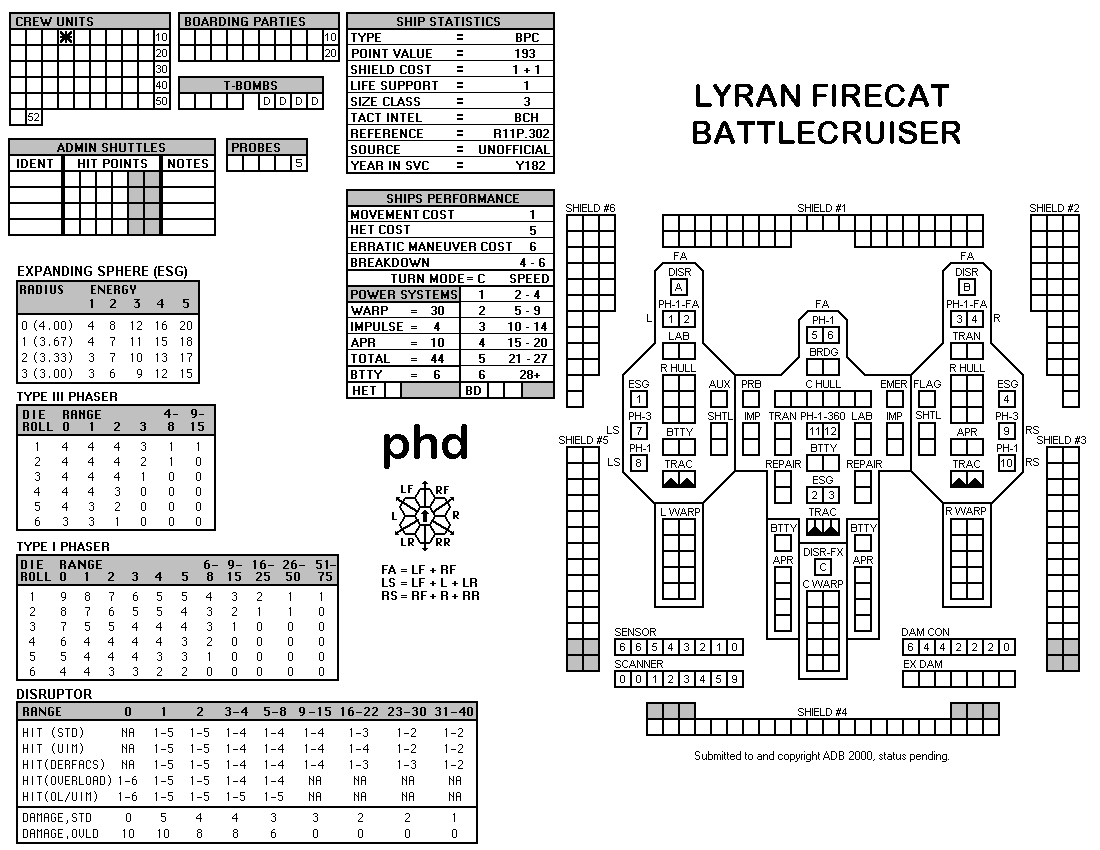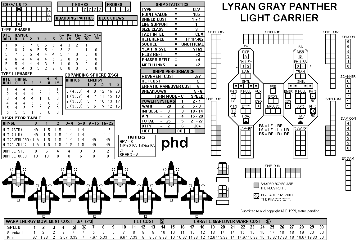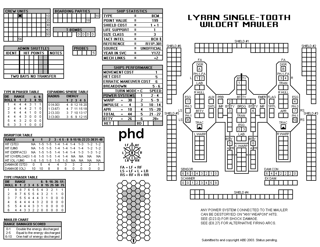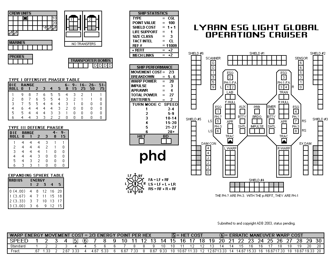 | Note: Due to the small size of this ship, a type-VI drone does 4 pts. of