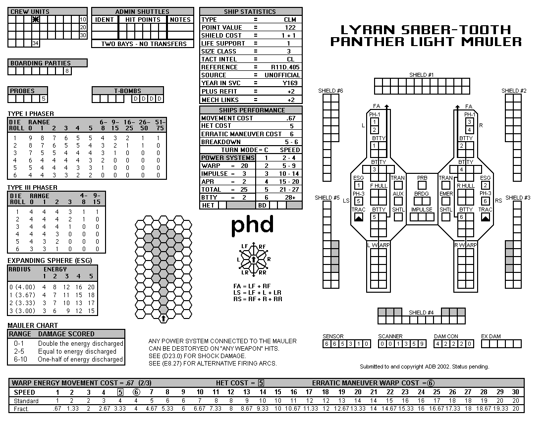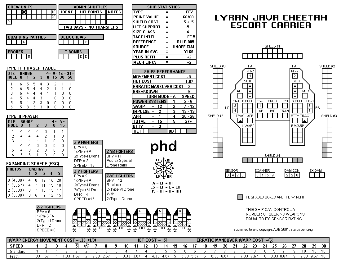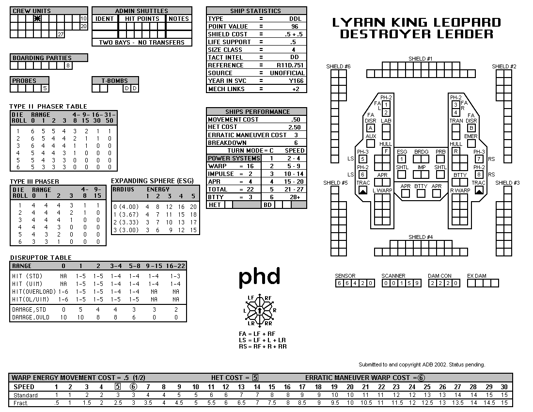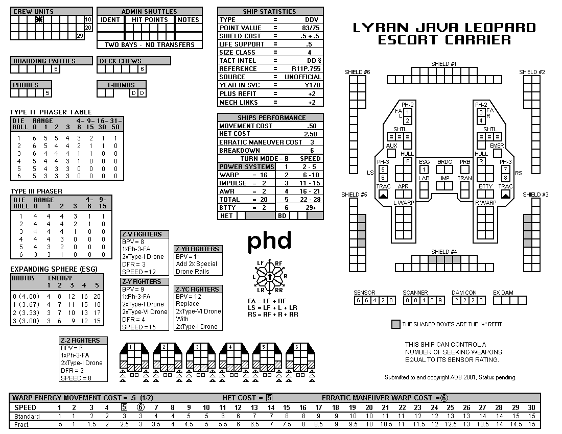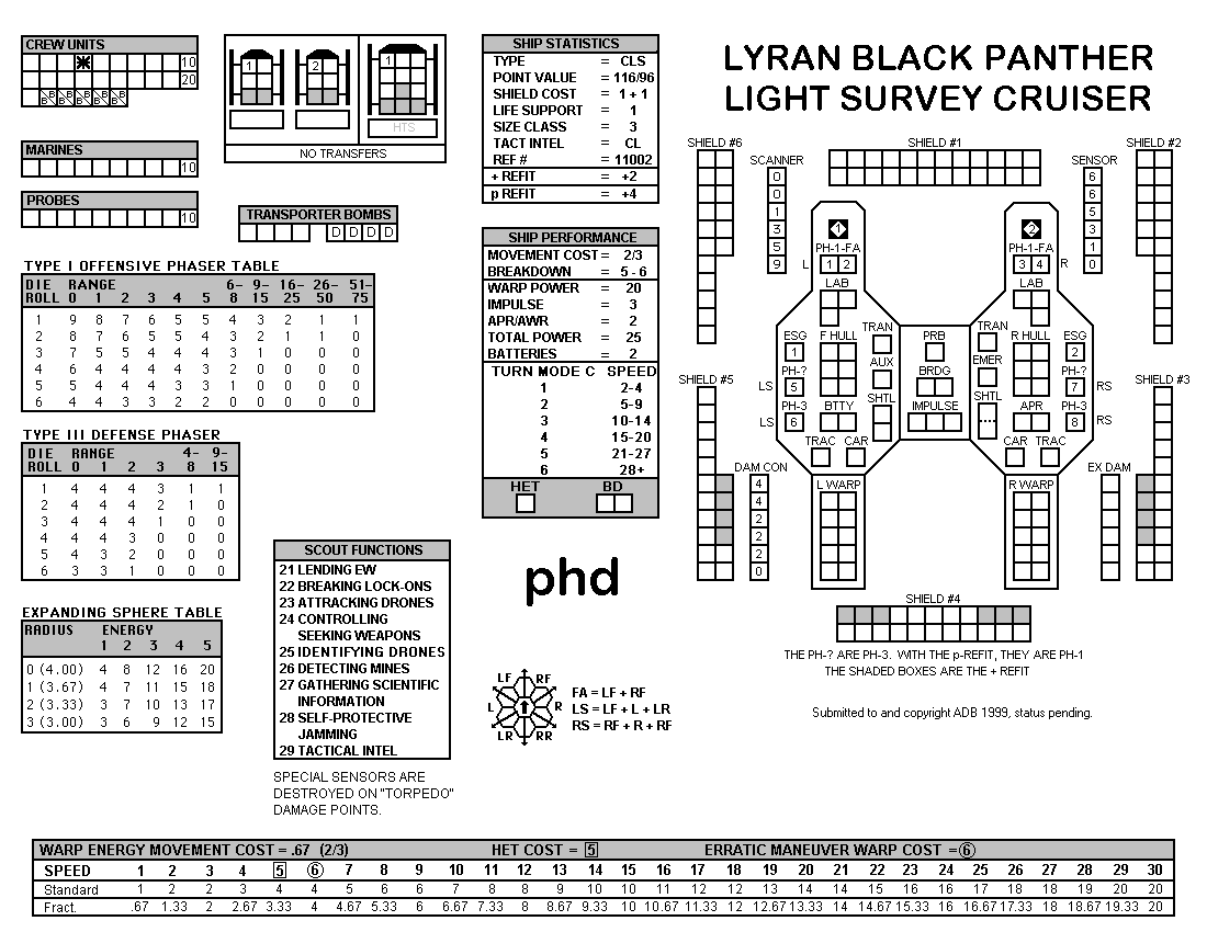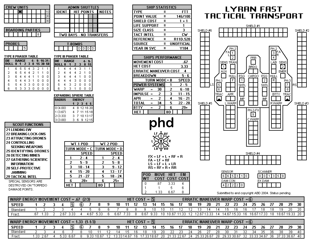 | Note: Due to the small size of this ship, a type-VI drone does 4 pts. of