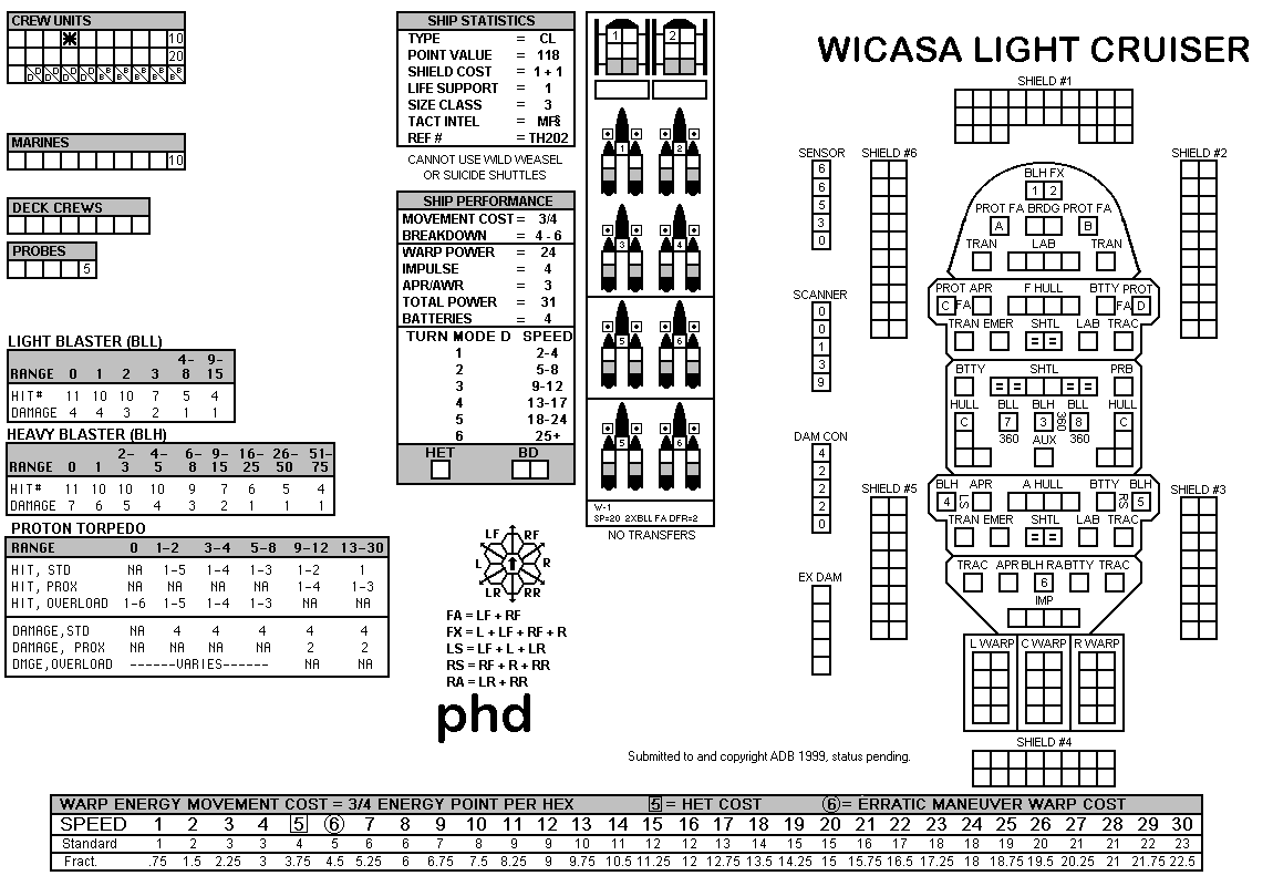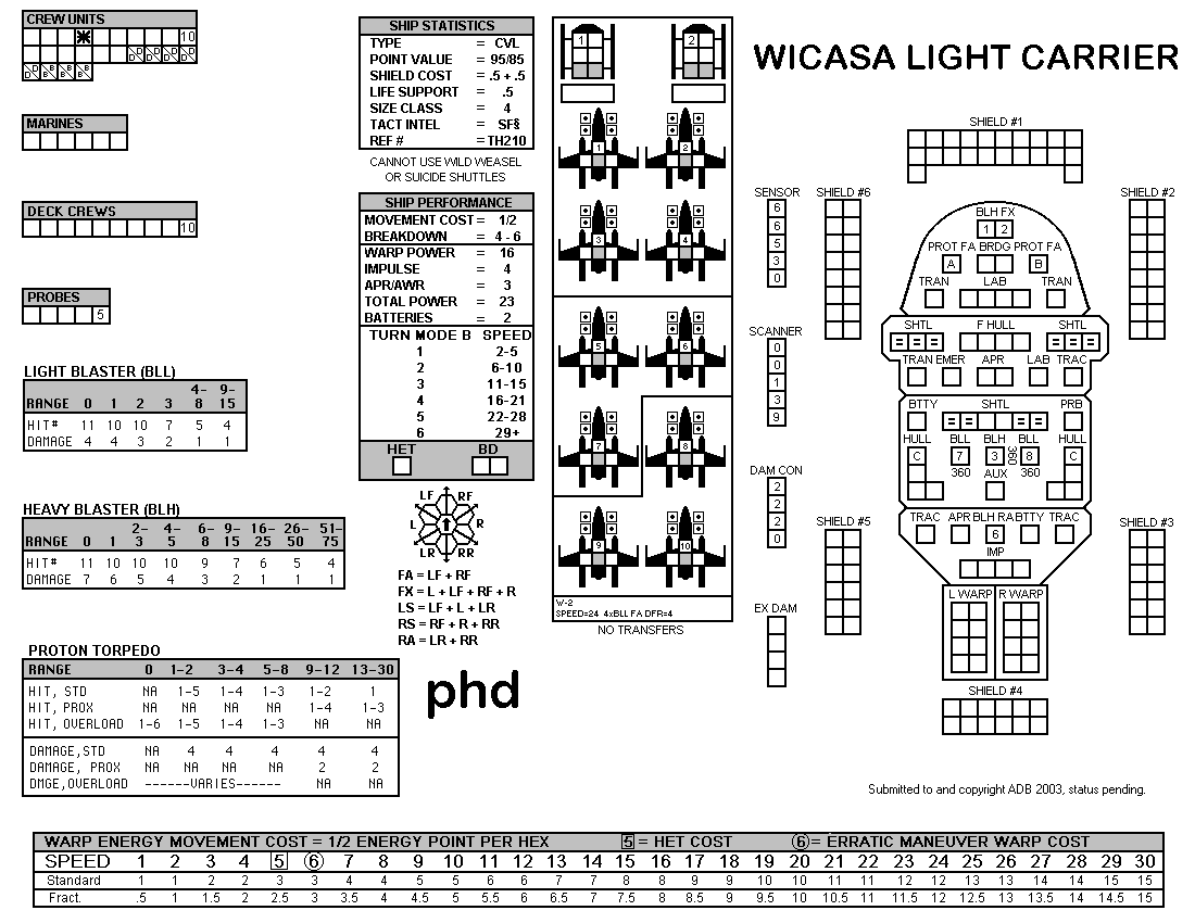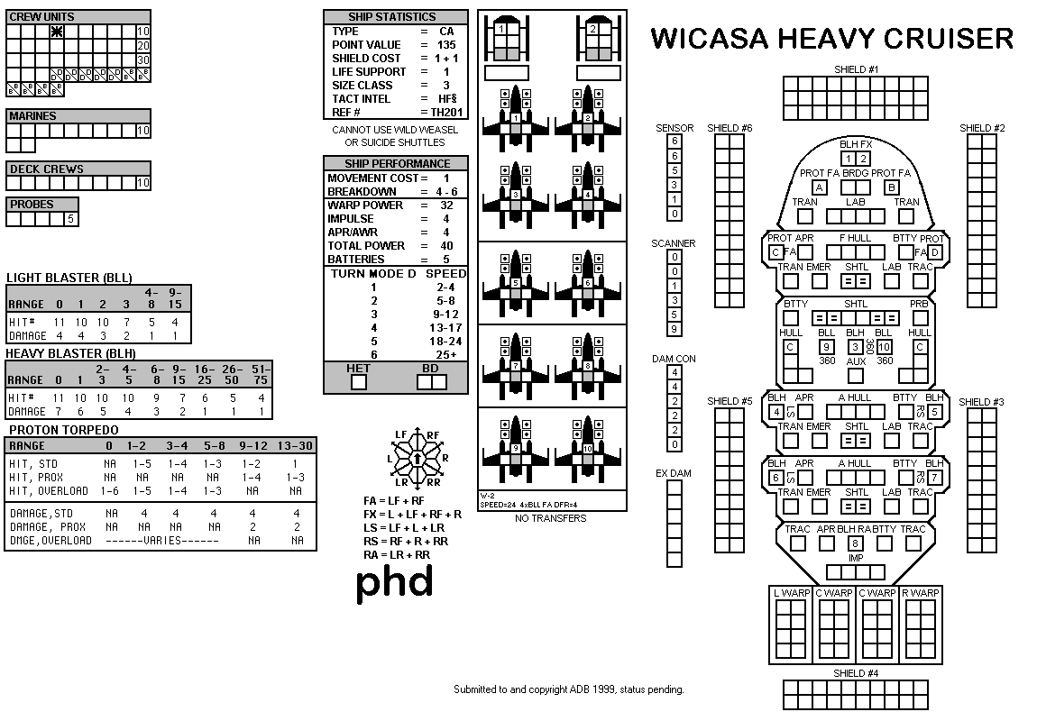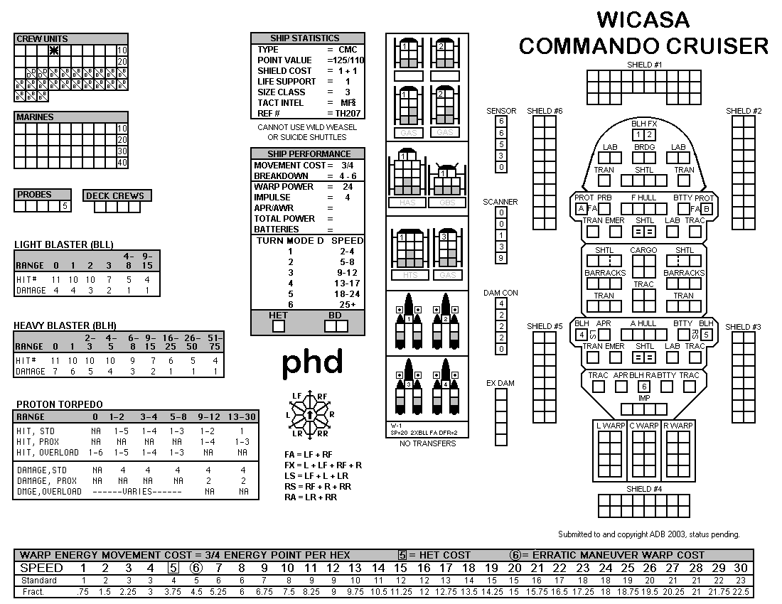 the crippled the status of the fighter/shuttle. NOTE: On some SSDs the crew check-off boxes have a 'B' or 'D' in them, these represent the crew units that are Boarding Parties or Deck Crews. NOTE: All Wisca ships can land and take off from a planet using all landing systems. |