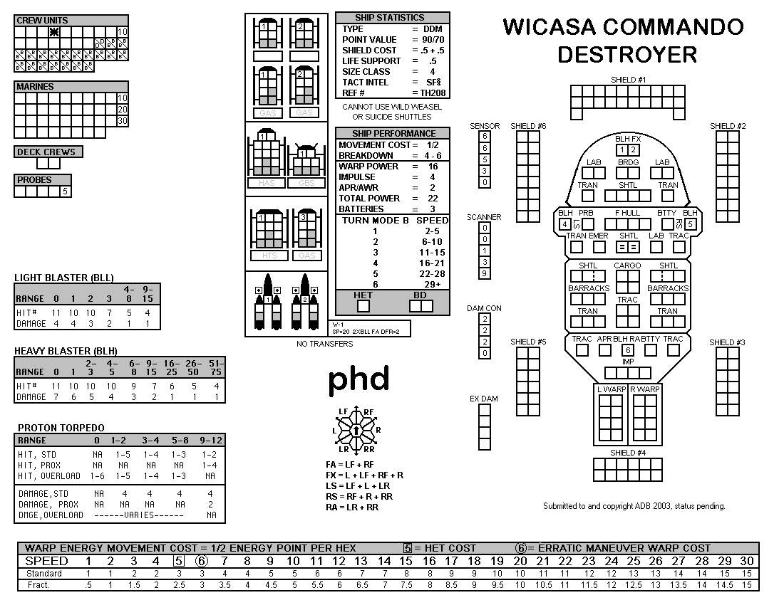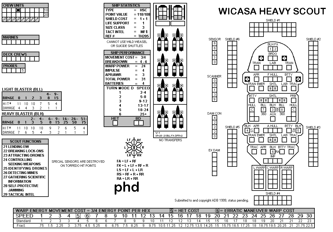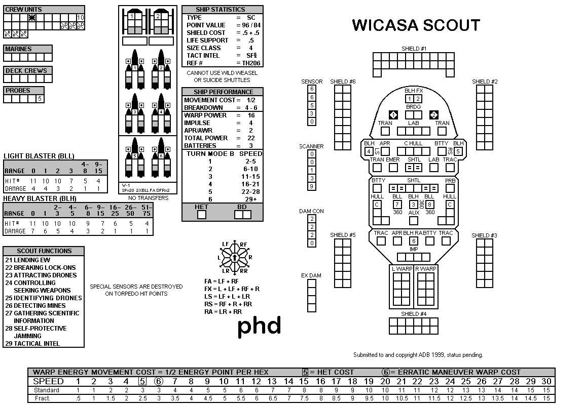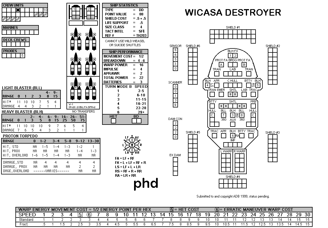 the crippled the status of the fighter/shuttle. NOTE: On some SSDs the crew check-off boxes have a 'B' or 'D' in them, these represent the crew units that are Boarding Parties or Deck Crews. NOTE: All Wisca ships can land and take off from a planet using all landing systems. |